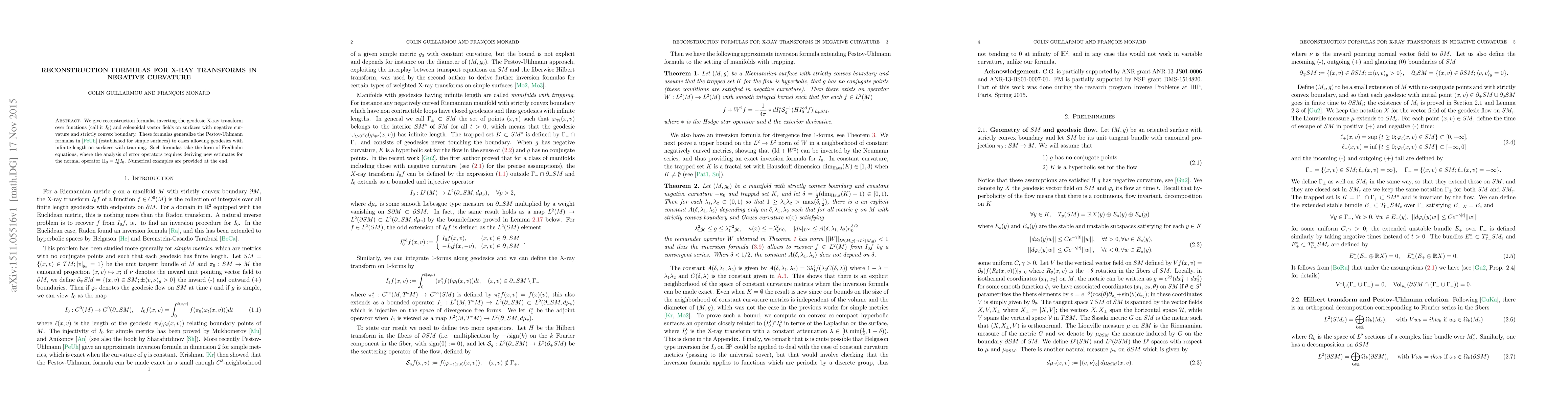Researchers developed reconstruction formulas for X-ray transforms on surfaces with negative curvature, extending previous work to include geodesics with infinite length. These formulas provide a new approach to imaging in complex geometries.