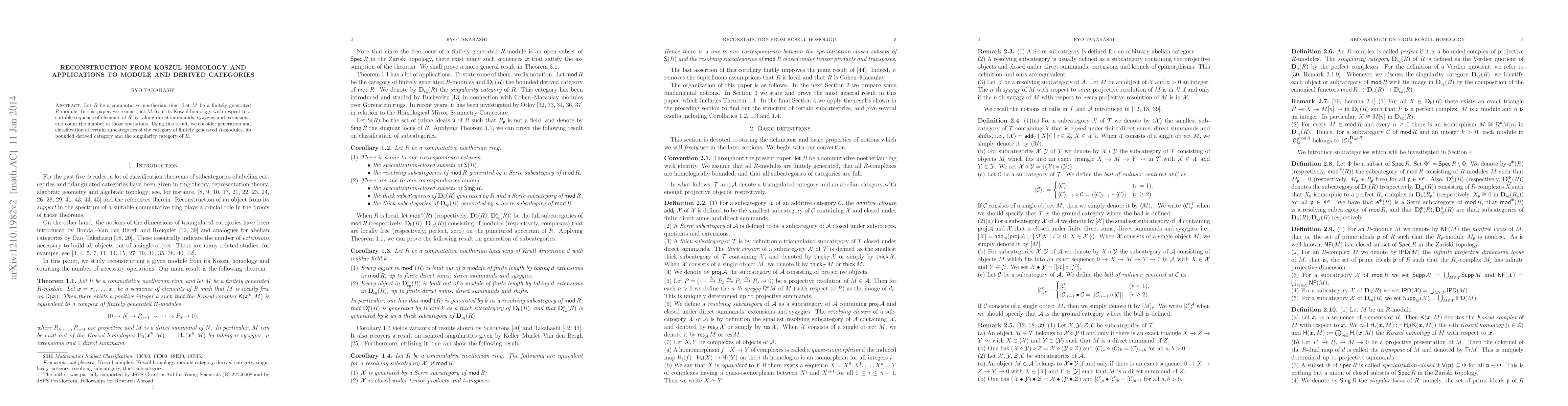 This paper reconstructs a finitely generated R-module from its Koszul homology, enabling the classification of certain subcategories of modules and derived categories.