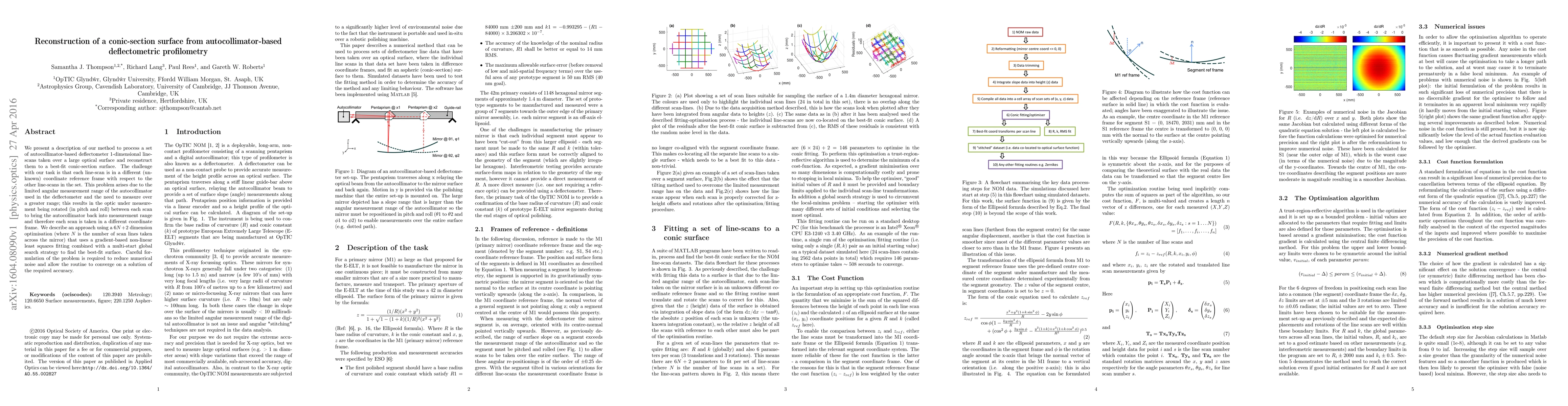 Researchers developed a method to reconstruct conic-section surfaces from autocollimator-based deflectometer line-scans, overcoming the challenge of coordinate frame differences due to device limitations.