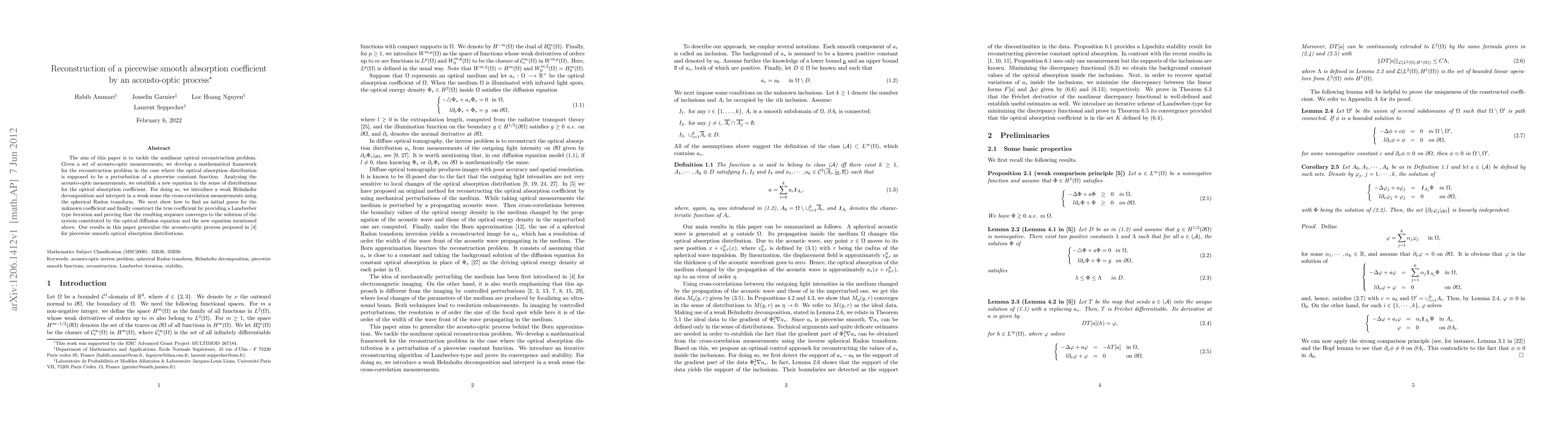 Researchers developed a method to reconstruct piecewise smooth absorption coefficients using acousto-optic measurements, enabling accurate imaging of optical materials with varying absorptivity.