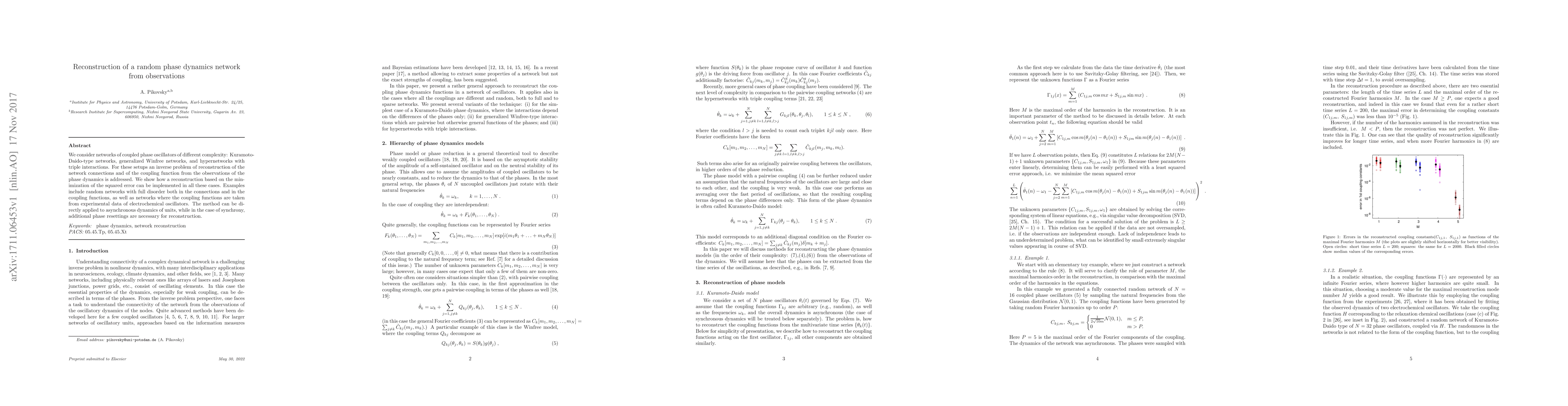 This paper proposes a method for reconstructing the network connections and coupling functions of various complex phase oscillator networks from observed phase dynamics. The approach, based on minimizing squared error, is demonstrated on both random networks and those derived from experimental data, with adaptations for asynchronous versus synchronous dynamics.