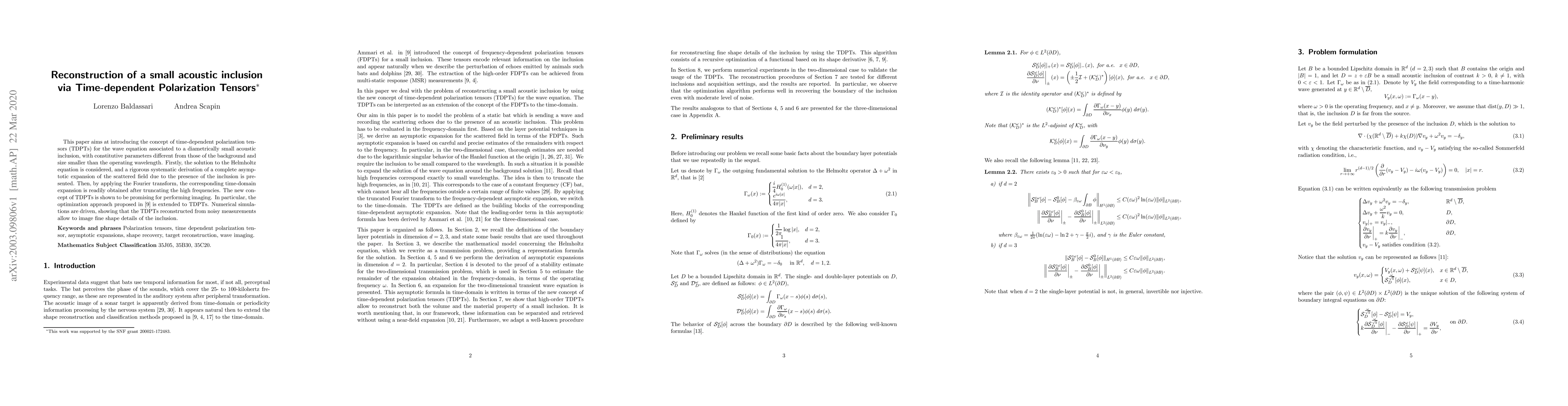 Researchers developed a new method to image small acoustic inclusions using time-dependent polarization tensors, showing promising results for fine shape details detection.