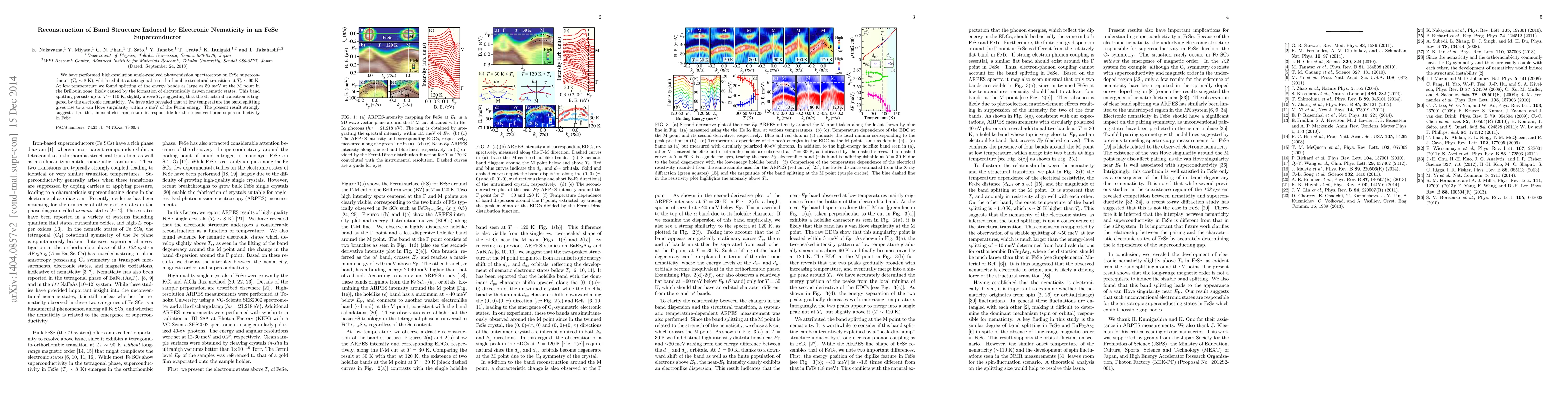 This study uses high-resolution angle-resolved photoemission spectroscopy to reveal significant band splitting in FeSe superconductor, likely due to electronic nematicity, which persists above the structural transition temperature, suggesting its role in the unconventional superconductivity. The band splitting also induces a van Hove singularity near the Fermi energy.