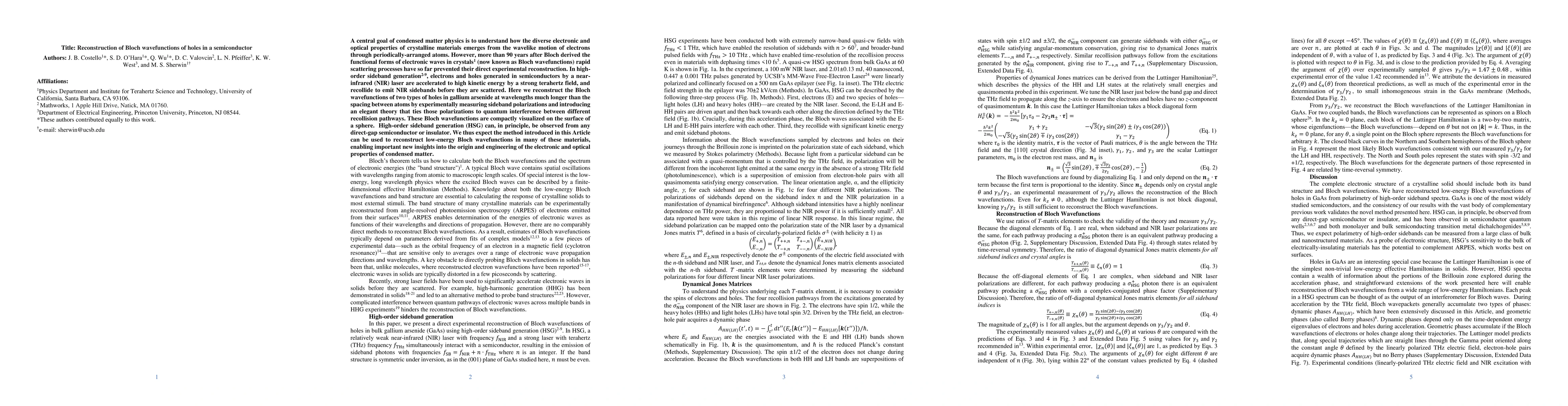 This research successfully reconstructs Bloch wavefunctions of holes in gallium arsenide using high-order sideband generation and terahertz fields, visualizing them on a sphere's surface. This method could enable similar reconstructions in other direct-gap semiconductors or insulators, providing insights into their electronic and optical properties.