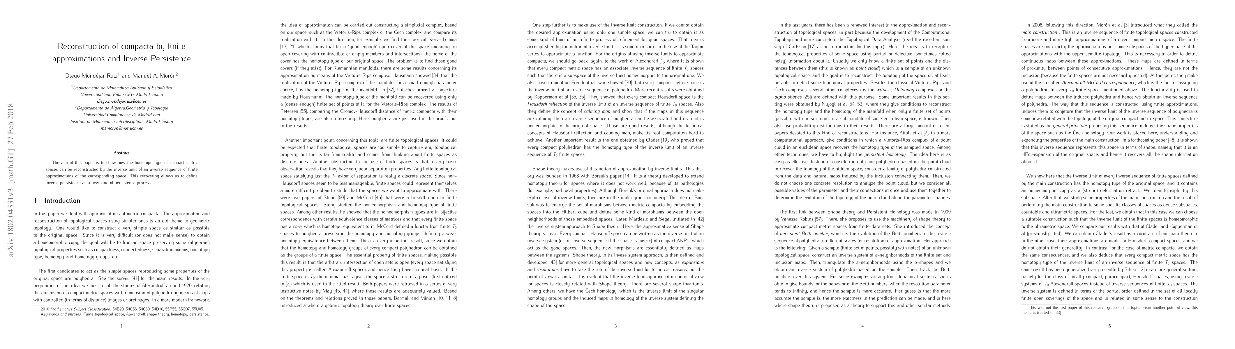 This paper demonstrates a method to reconstruct the homotopy type of compact metric spaces using the inverse limit of finite approximations, introducing inverse persistence as a novel persistence process.