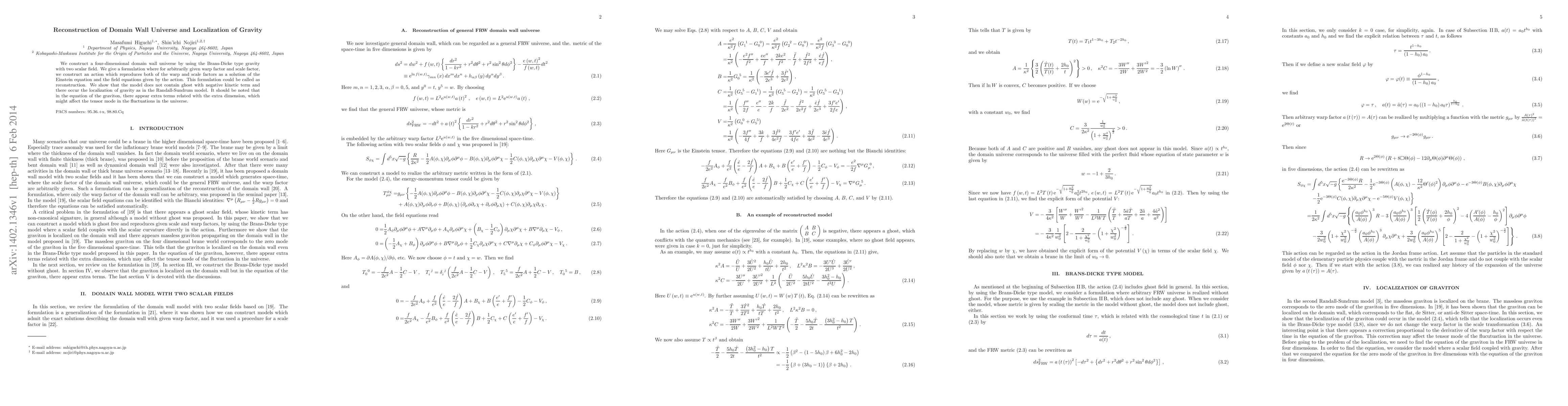 We construct a four-dimensional domain wall universe by using the Brans-Dicke type gravity with two scalar field. We give a formulation where for arbitrarily given warp factor and scale factor, we construct an action which reproduces both of the warp and scale factors as a solution of the Einstein equation and the field equations given by the action. This formulation could be called as reconstruction. We show that the model does not contain ghost with negative kinetic term and there occur the localization of gravity as in the Randall-Sundrum model. It should be noted that in the equation of the graviton, there appear extra terms related with the extra dimension, which might affect the tensor mode in the fluctuations