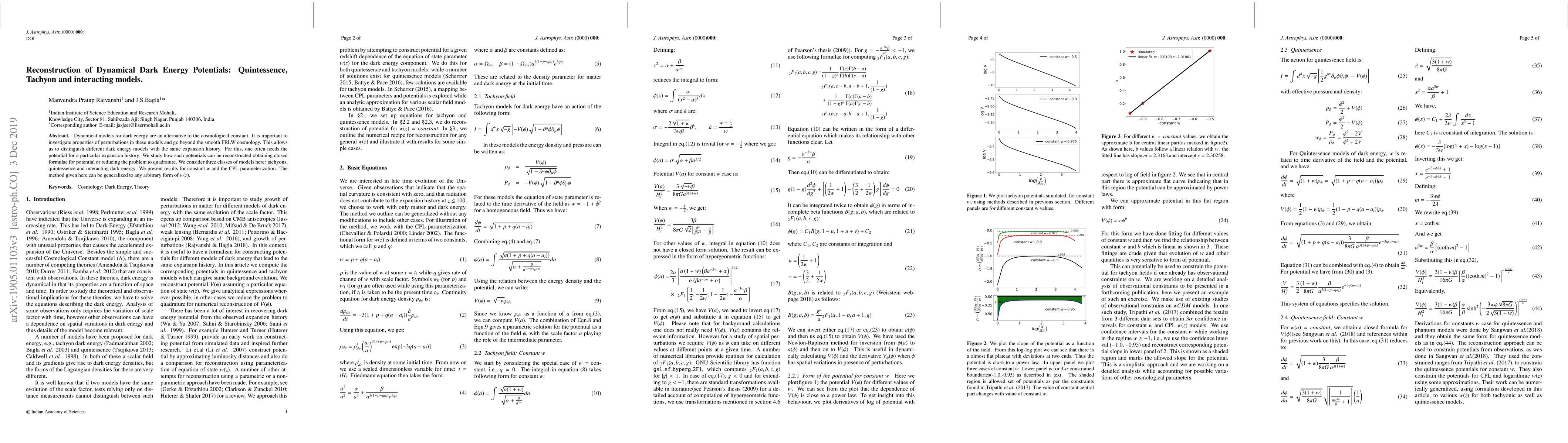 This paper reconstructs dynamical dark energy potentials for quintessence, tachyons, and interacting models, providing closed formulae or reducing the problem to quadrature. It aims to distinguish these models through their perturbations, beyond the standard FLRW cosmology, and presents results for constant w and the CPL parameterization.