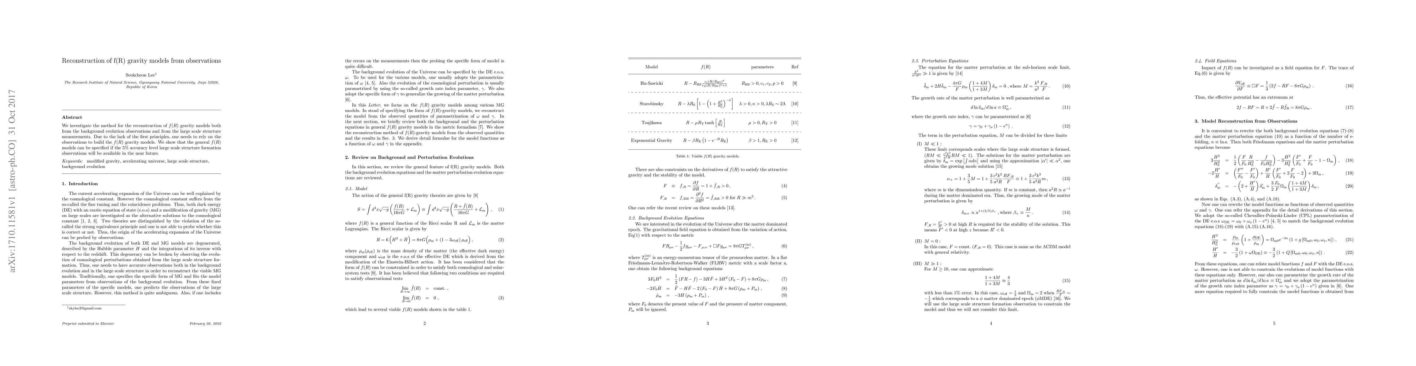 This paper explores methods to reconstruct $f(R)$ gravity models using observational data from both background evolution and large scale structure. It demonstrates that with 5% accuracy in future large scale structure observations, general $f(R)$ models can be specified.