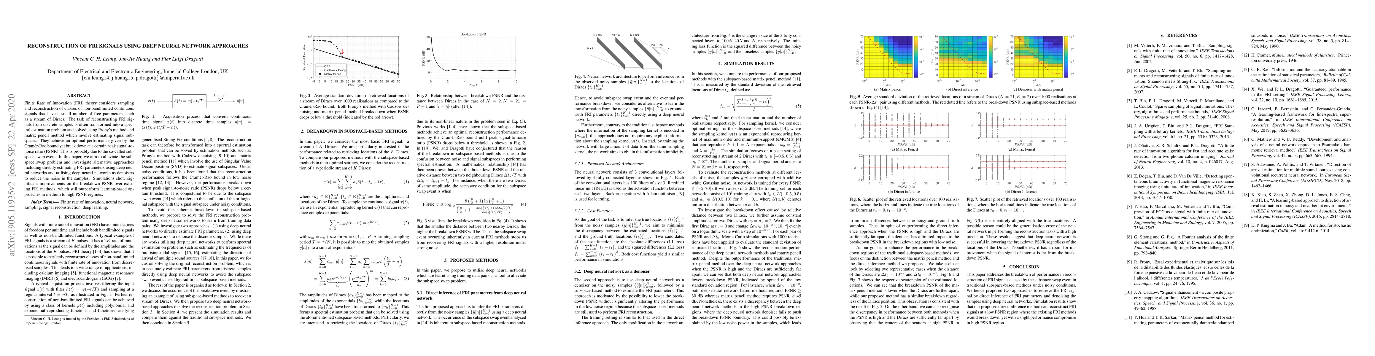This paper explores the use of deep neural networks to reconstruct Finite Rate of Innovation (FRI) signals, addressing the subspace swap problem that limits traditional methods like Prony's method. The simulations demonstrate that deep neural networks can significantly improve the breakdown point of the peak signal-to-noise ratio compared to conventional methods.