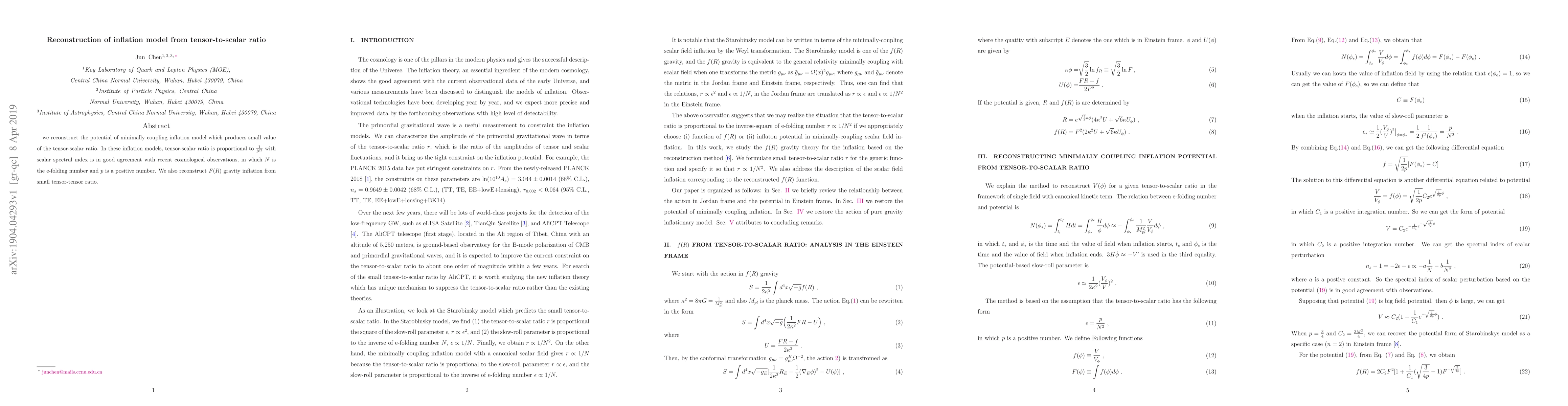 This paper reconstructs the potential of minimally coupled inflation models that yield a small tensor-to-scalar ratio, aligning with recent cosmological observations. It also explores f(R) gravity inflation models with a small tensor-to-scalar ratio.