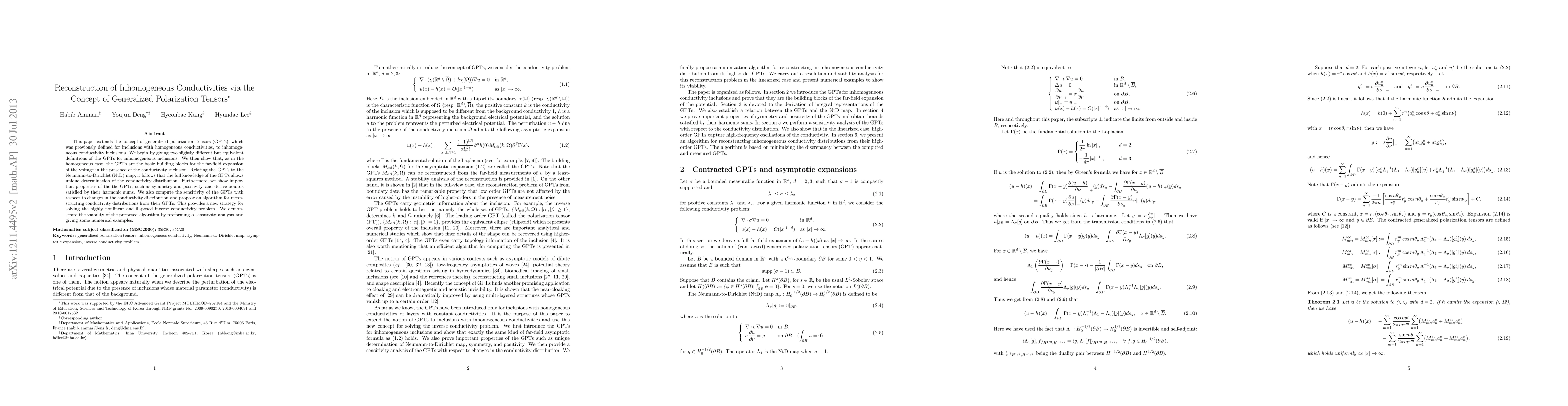This paper extends generalized polarization tensors (GPTs) to inhomogeneous conductivity inclusions, showing they are fundamental for voltage expansion and conductivity distribution determination. An algorithm for reconstructing conductivity distributions from GPTs is proposed, offering a new approach to solving the inverse conductivity problem.