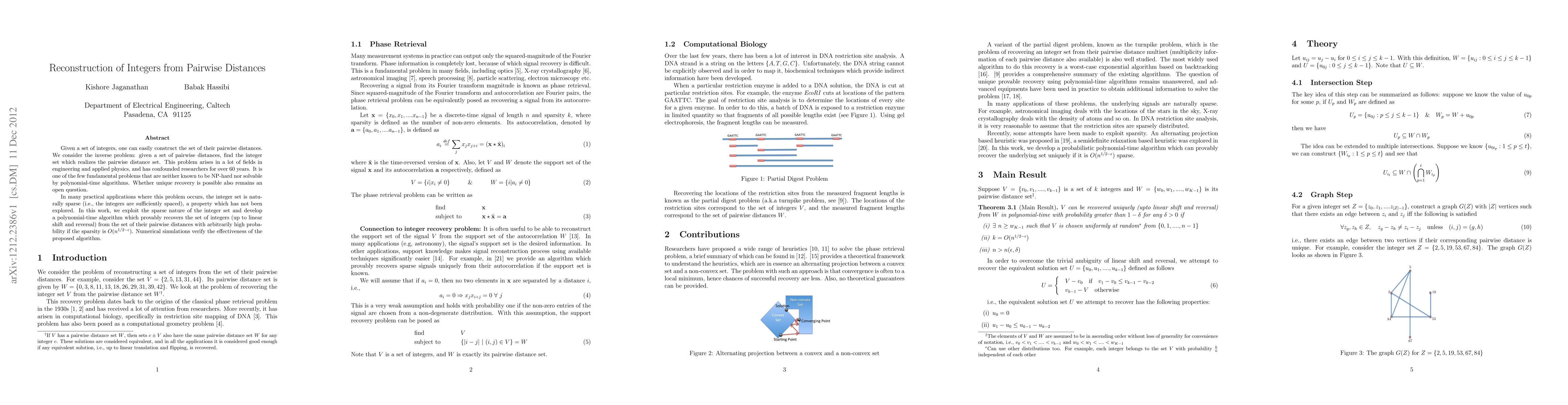 This paper addresses the inverse problem of reconstructing a sparse set of integers from their pairwise distances, developing a polynomial-time algorithm that recovers the integer set with high probability given sufficient sparsity. The effectiveness of the proposed method is verified through numerical simulations.