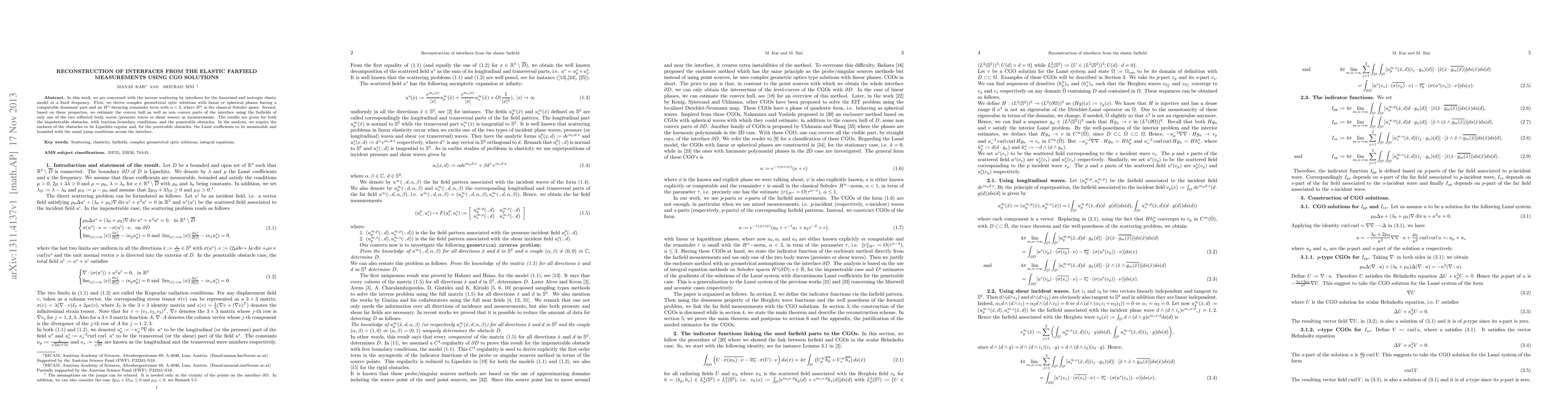 Researchers developed a method to reconstruct interfaces from elastic farfield measurements using complex geometrical optic solutions, allowing for the estimation of convex and non-convex parts of the interface with minimal data.