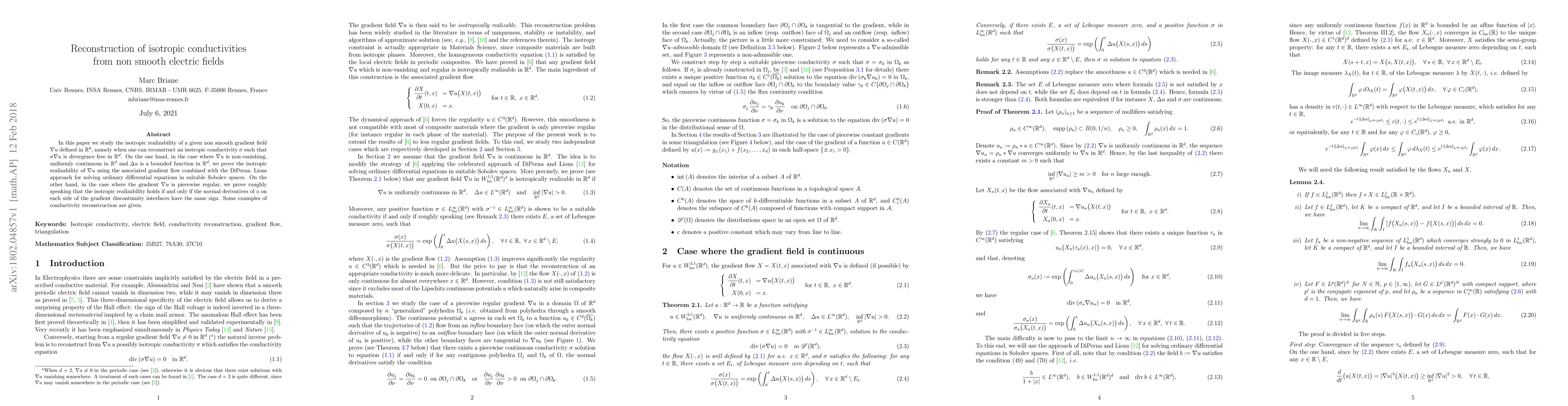 Researchers investigated how to reconstruct isotropic conductivities from non-smooth electric fields, finding conditions under which it is possible to do so, particularly when the fields have discontinuities.