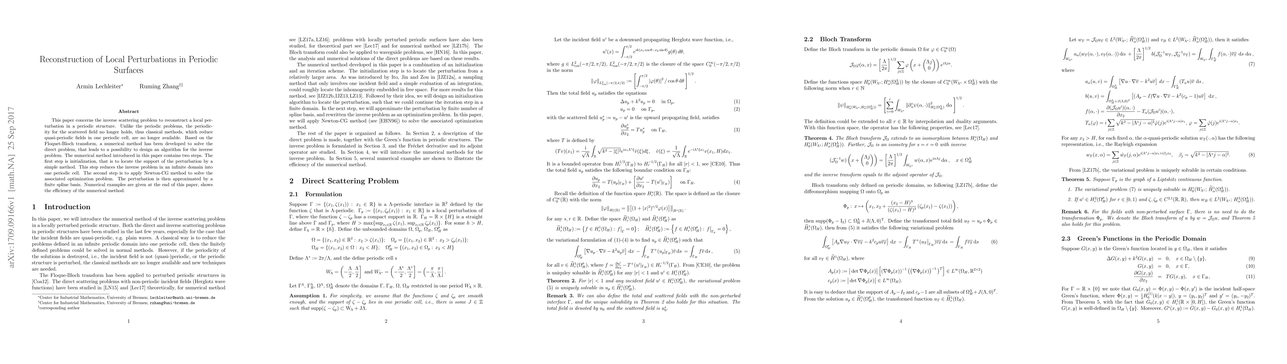 Researchers developed a method to reconstruct local perturbations in periodic surfaces using a numerical approach that combines initialization with the Newton-CG optimization algorithm, showing its efficiency in solving inverse scattering problems.
