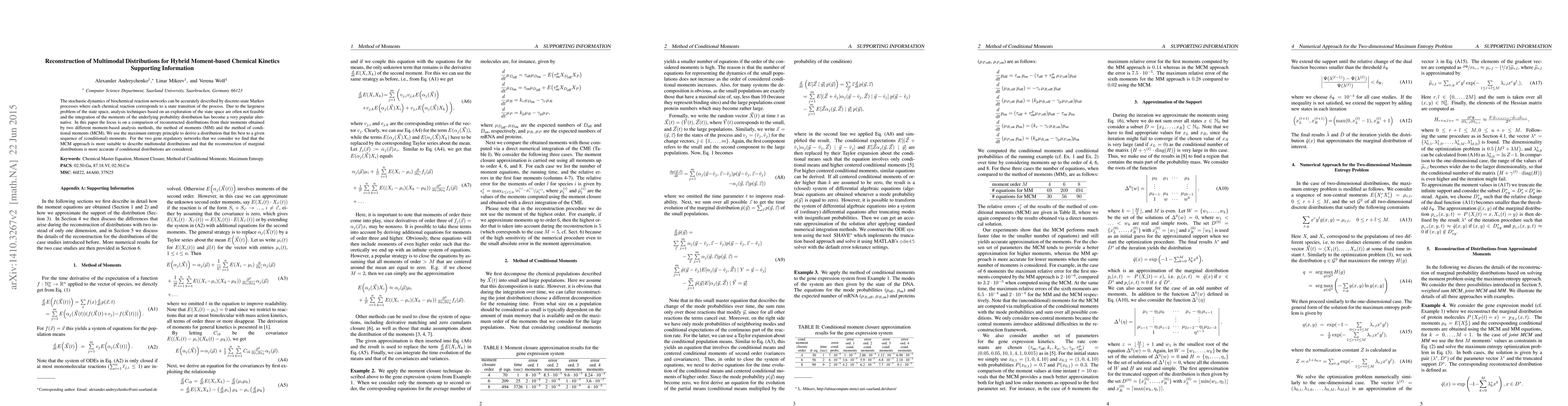 This paper compares two moment-based analysis methods, MM and MCM, for reconstructing multimodal distributions in biochemical reaction networks. The MCM approach, using conditional moments and the maximum entropy principle, is found to be more accurate for describing multimodal distributions in gene regulatory networks.