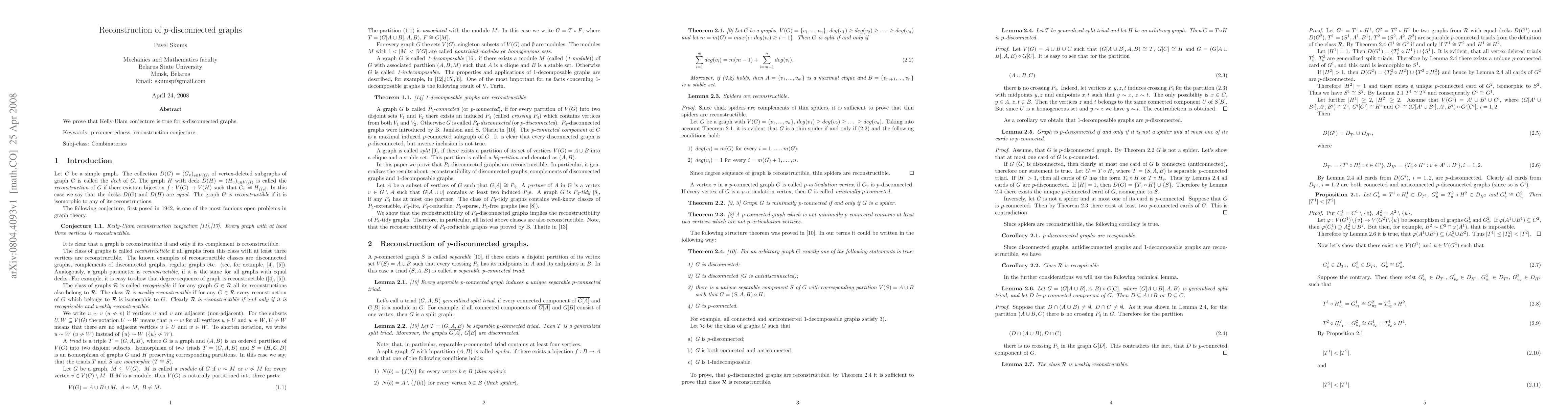 Researchers prove the Kelly-Ulam conjecture is true for p-disconnected graphs, a significant advancement in graph theory.