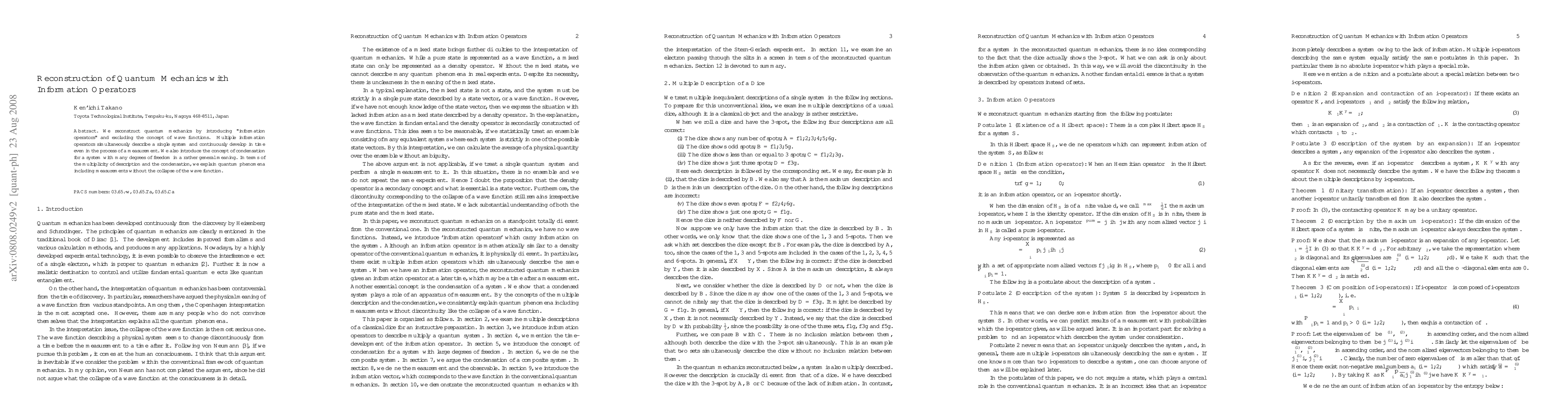 We reconstruct quantum mechanics by introducing "information operators" and excluding the concept of wave functions. Multiple information operators simultaneously describe a single system and continuously develop in time even in the process of a measurement. We also introduce the concept of condensation for a system with many degrees of freedom in a rather general meaning. In terms of the multiplicity of description and the condensation, we explain quantum phenomena including measurements without the collapse of the wave function.