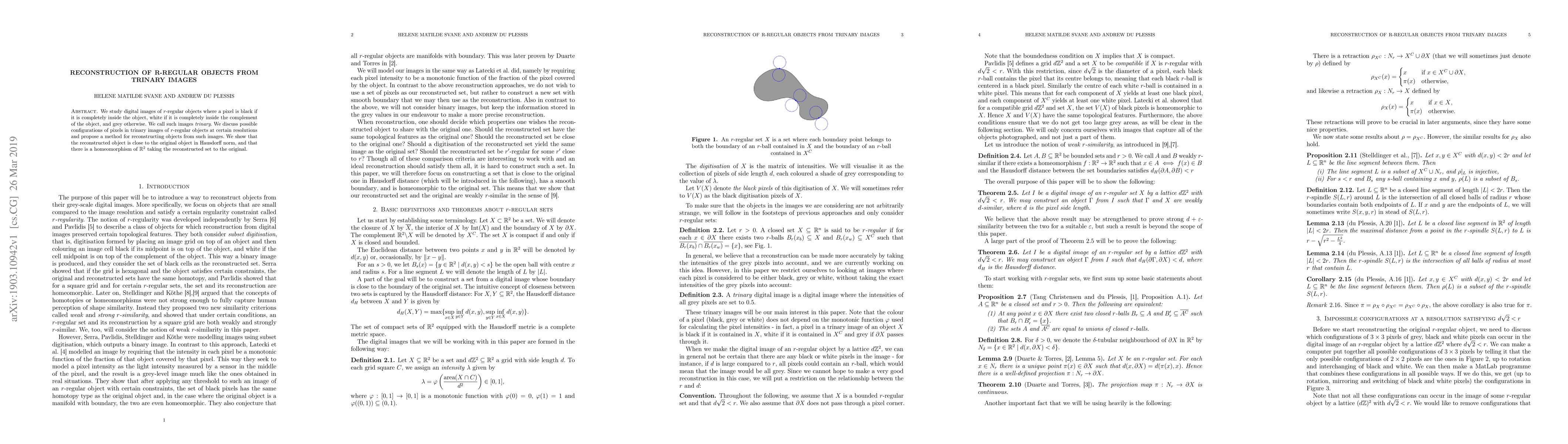 Researchers developed a method to reconstruct r-regular objects from trinary images, which accurately capture object boundaries at various resolutions. The reconstructed objects closely match the originals in shape and structure.