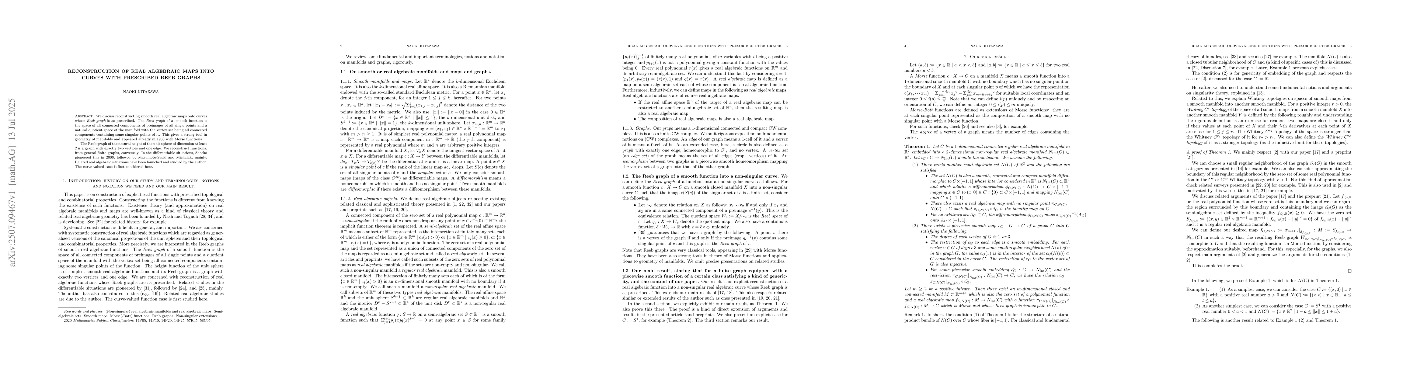 We discuss reconstructing smooth real algebraic maps onto curves whose Reeb graph is as prescribed. %This can be contribut\ed to real algebraic geometry, especially in explicit examples in real algebraic geometry in a new way. The Reeb graph of a smooth function is the space of all connected components of preimages of all single points and a natural quotient space of the manifold with the vertex set being all connected components containing some singular points of it. This gives a strong tool in geometry of manifolds and appeared already in 1950 with Morse functions. The Reeb graph of the natural height of the unit sphere of dimension at least 2 is a graph with exactly two vertices and one edge. We reconstruct functions, from general finite graphs, conversely. In the differentiable situations, Sharko pioneered this in 2006, followed by Masumoto-Saeki and Michalak, mainly. Related real algebraic situations have been launched and studied by the author. The curve-valued case is first considered here.