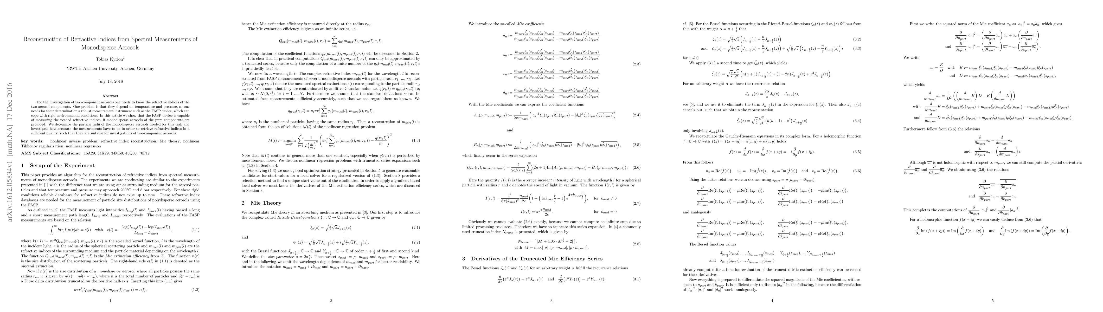 This paper demonstrates the use of the FASP device to accurately measure refractive indices of monodisperse aerosols under controlled environmental conditions, essential for studying two-component aerosols. It determines the necessary particle radii and assesses the measurement accuracy required for reliable refractive index retrieval.
