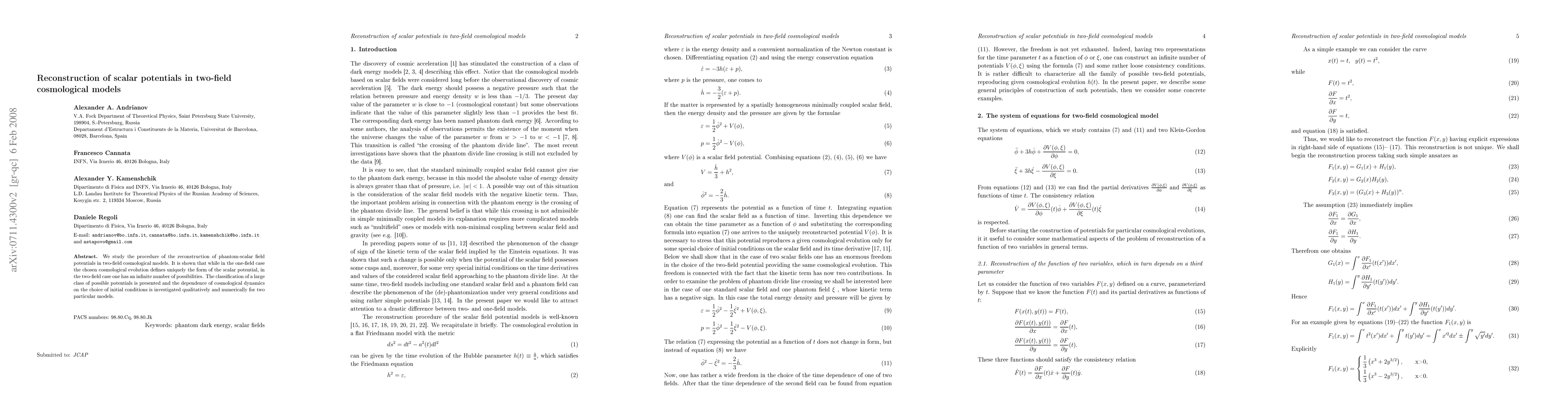 This paper explores the reconstruction of phantom-scalar field potentials in two-field cosmological models, demonstrating that unlike in one-field cases, multiple potential forms exist. It classifies a broad range of potentials and analyzes their cosmological dynamics, focusing on initial conditions through qualitative and numerical methods.