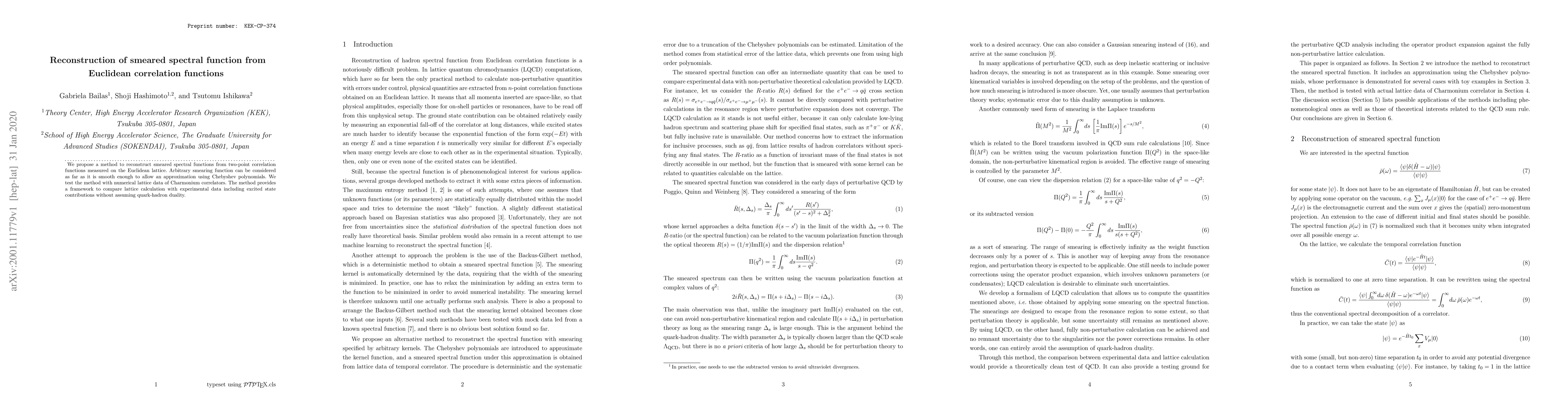 This paper proposes a method to reconstruct smeared spectral functions from Euclidean lattice correlation functions using Chebyshev polynomial approximations. The method is tested on Charmonium correlators and offers a framework for comparing lattice calculations with experimental data without relying on quark-hadron duality.