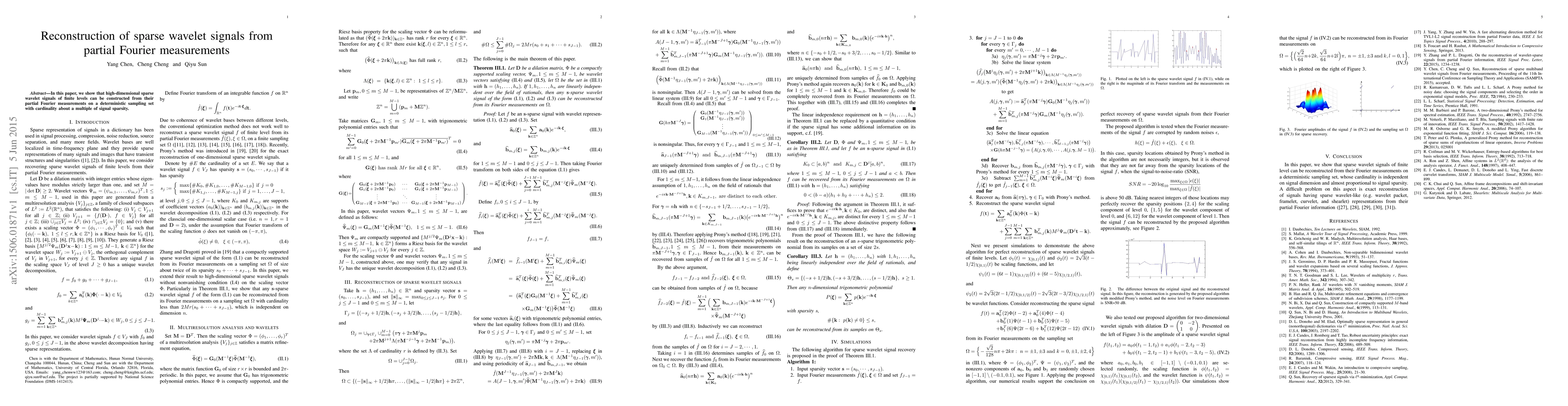 Researchers developed a method to reconstruct sparse wavelet signals from limited Fourier measurements on specific sampling sets, allowing for efficient signal recovery with high accuracy.