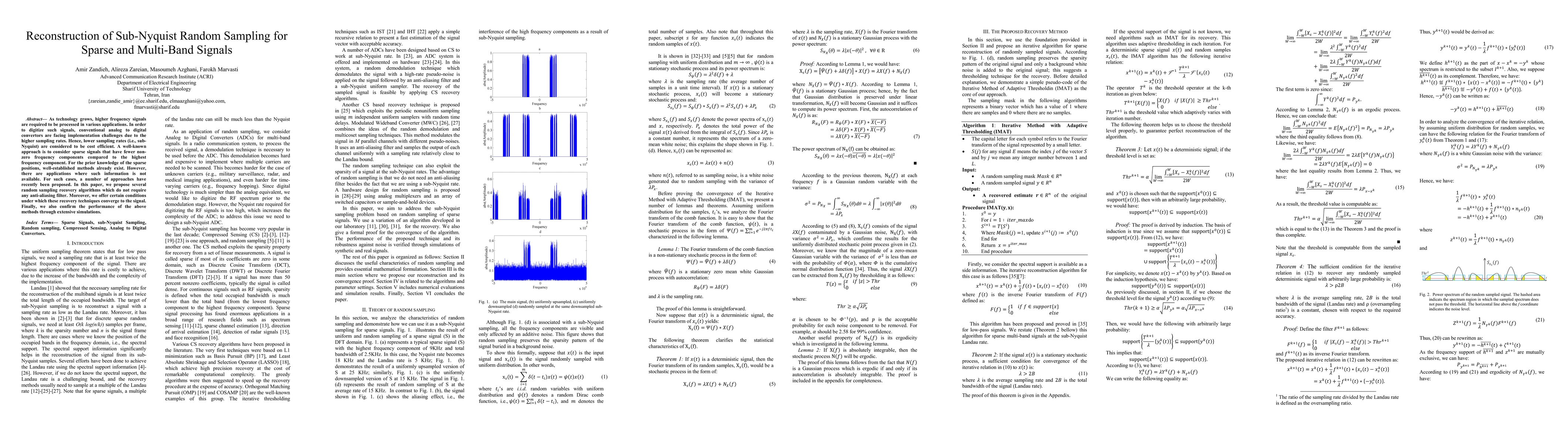 This paper proposes novel random sampling recovery algorithms for sparse and multi-band signals at sub-Nyquist rates without the need for anti-aliasing filters, and establishes conditions under which these methods converge to the original signal, validated through extensive simulations.