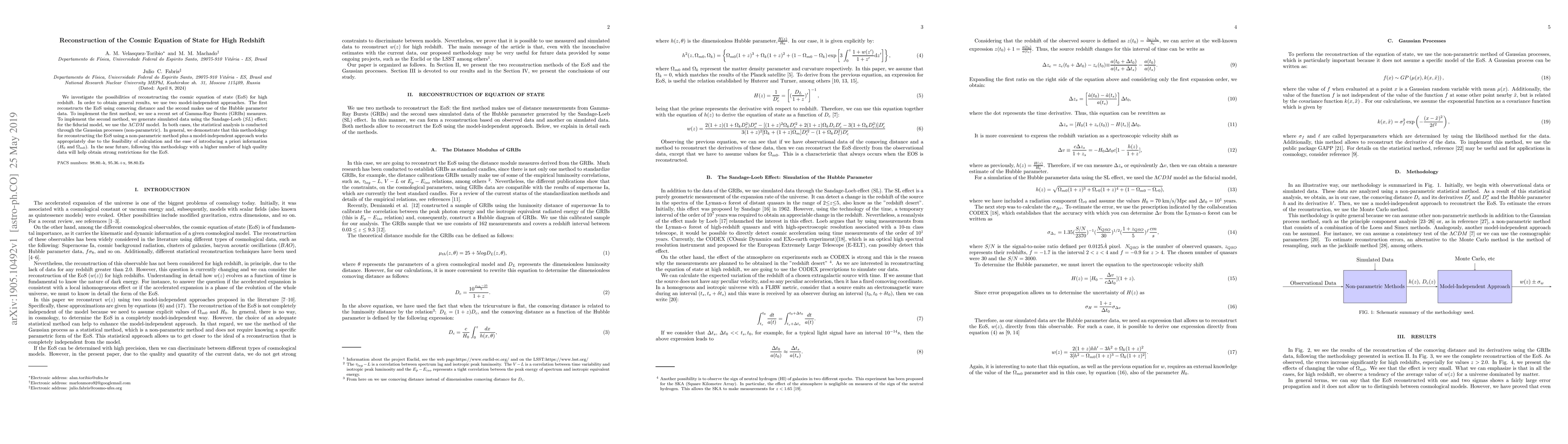 We investigate the possibilities of reconstructing the cosmic equation of state (EoS) for high redshift. In order to obtain general results, we use two model-independent approaches. The first reconstructs the EoS using comoving distance and the second makes use of the Hubble parameter data. To implement the first method, we use a recent set of Gamma-Ray Bursts (GRBs) measures. To implement the second method, we generate simulated data using the Sandage-Loeb ($SL$) effect; for the fiducial model, we use the $\Lambda CDM$ model. In both cases, the statistical analysis is conducted through the Gaussian processes (non-parametric). In general, we demonstrate that this methodology for reconstructing the EoS using a non-parametric method plus a model-independent approach works appropriately due to the feasibility of calculation and the ease of introducing a priori information ($H_ {0}$ and $\Omega_{m0}$). In the near future, following this methodology with a higher number of high quality data will help obtain strong restrictions for the EoS.
