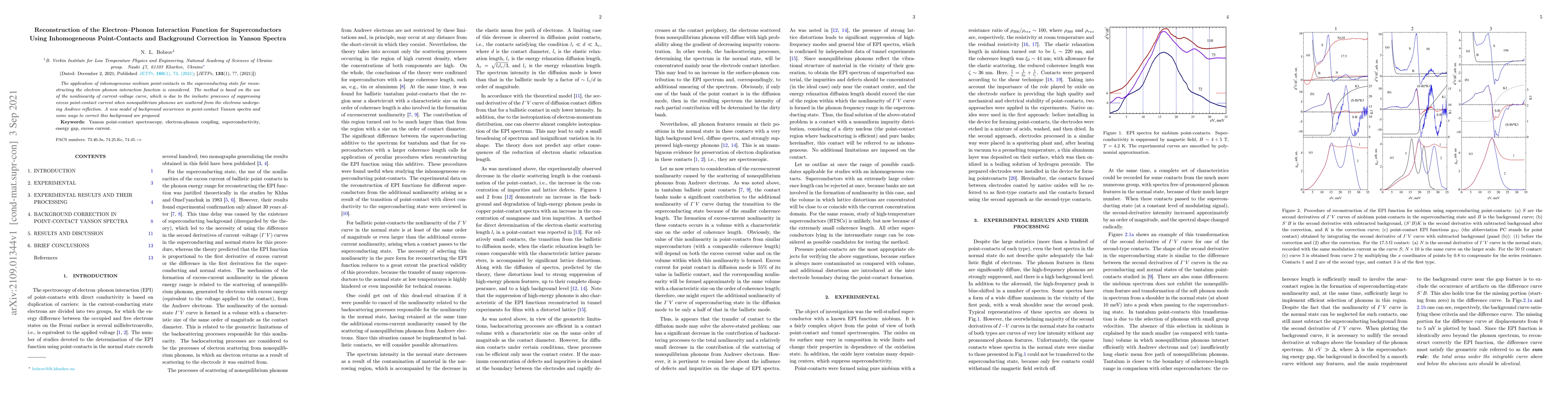 This paper proposes a method to reconstruct the electron-phonon interaction function in superconductors using inhomogeneous niobium point-contacts, leveraging nonlinear current-voltage curves due to Andreev reflection and phonon scattering. It also introduces a new model and correction techniques for background in Yanson spectra.