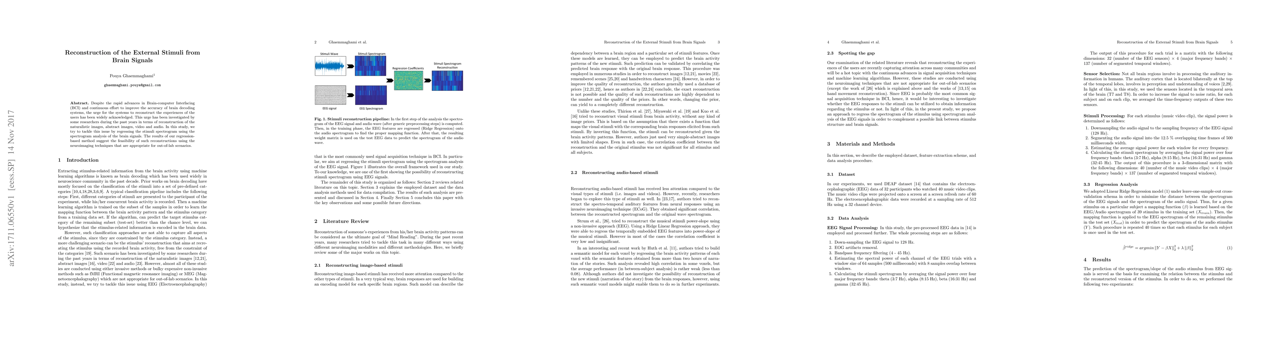 Researchers developed a method to reconstruct external stimuli from brain signals using spectrogram analysis, suggesting its feasibility for out-of-lab scenarios. The approach enables brain-computer interfaces to recreate user experiences more accurately.