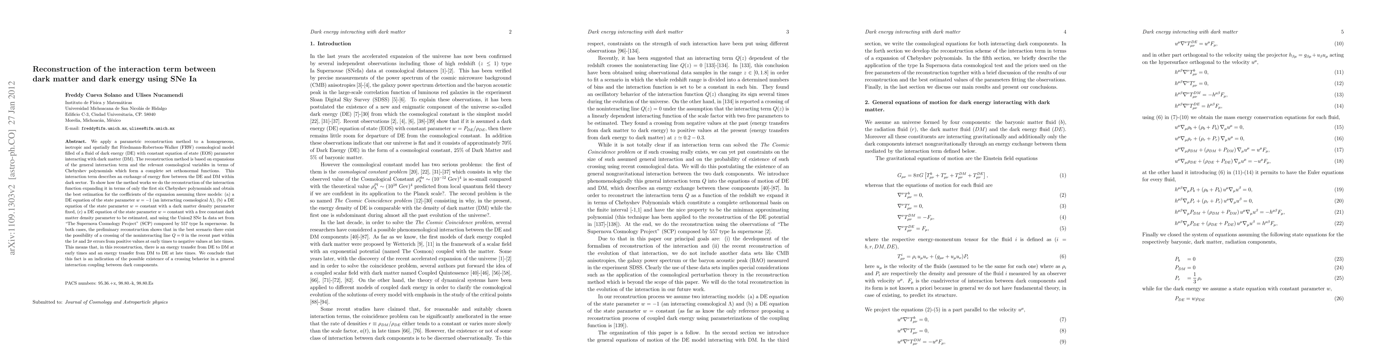 This paper reconstructs the interaction term between dark matter and dark energy using a parametric method based on Chebyshev polynomials and SNe Ia data. The study suggests a possible energy transfer from dark energy to dark matter in the early universe, reversing to dark matter to dark energy in recent times.