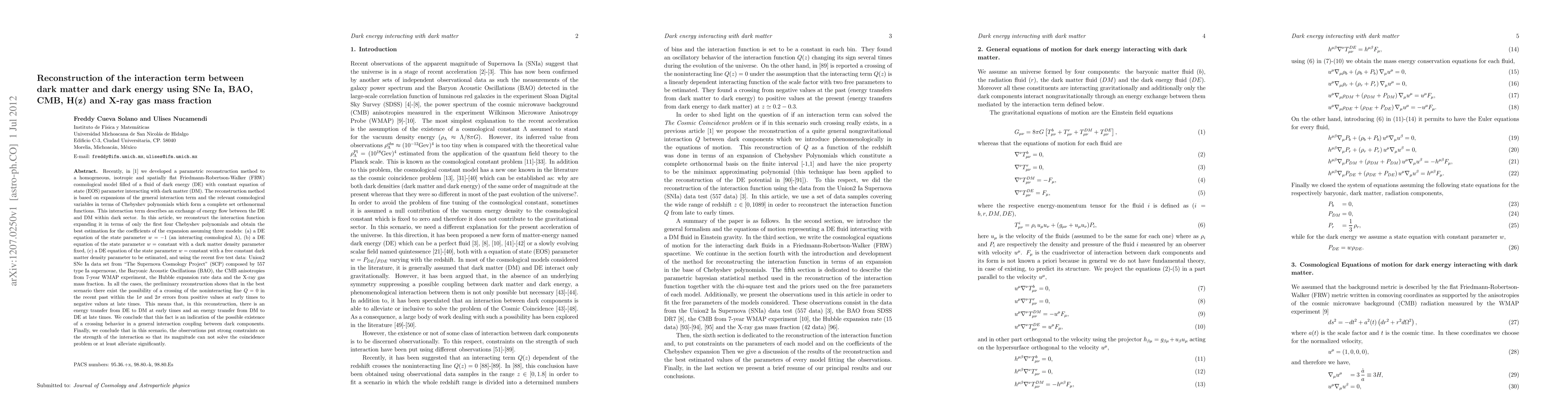 Recently, in [1] we developed a parametric reconstruction method to a homogeneous, isotropic and spatially flat Friedmann-Robertson-Walker (FRW) cosmological model filled of a fluid of dark energy (DE) with constant equation of state (EOS) parameter interacting with dark matter (DM). The reconstruction method is based on expansions of the general interaction term and the relevant cosmological variables in terms of Chebyshev polynomials which form a complete set orthonormal functions. In this article, we reconstruct the interaction function expanding it in terms of only the first four Chebyshev polynomials and obtain the best estimation for the coefficients of the expansion assuming three models: (a) a DE equation of the state parameter w=-1 (an interacting cosmological Lambda), (b) a DE equation of the state parameter w = constant with a dark matter density parameter fixed, (c) a DE equation of the state parameter w = constant with a free constant dark matter density parameter to be estimated. In all the cases, the preliminary reconstruction shows that in the best scenario there exist the possibility of a crossing of the noninteracting line Q=0 in the recent past within the 1-sigma and 2-sigma errors from positive values at early times to negative values at late times. This means that, in this reconstruction, there is an energy transfer from DE to DM at early times and an energy transfer from DM to DE at late times. We conclude that this fact is an indication of the possible existence of a crossing behavior in a general interaction coupling between dark components. Finally, we conclude that in this scenario, the observations put strong constraints on the strength of the interaction so that its magnitude can not solve the coincidence problem or at least alleviate significantly.