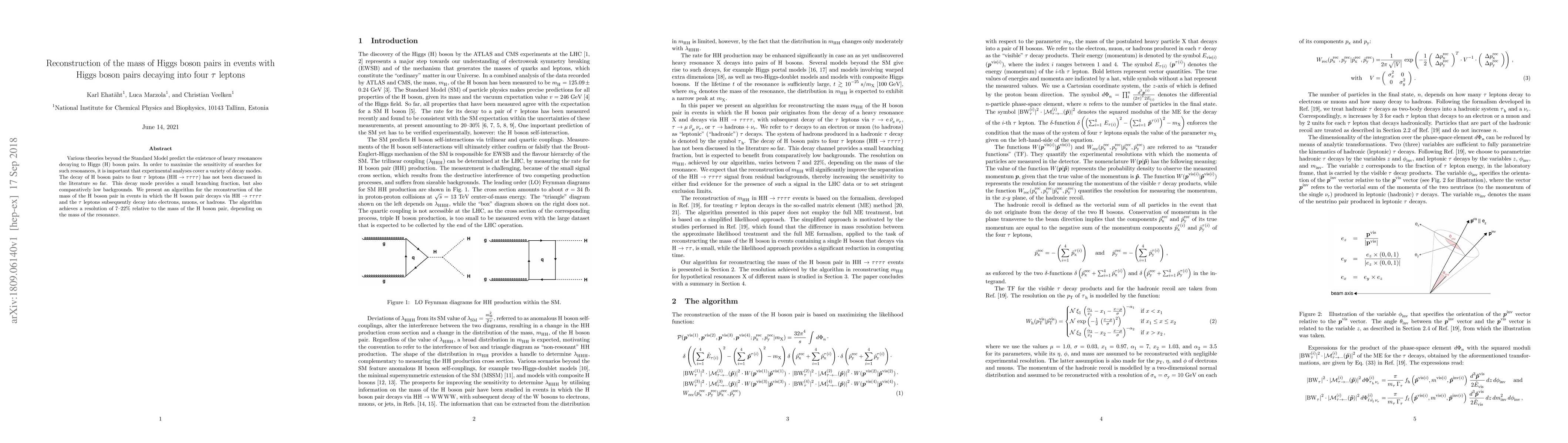 This research introduces a method to reconstruct the mass of Higgs boson pairs decaying into four tau leptons (HH -> tau tau tau tau), a decay mode not previously explored in literature. The algorithm achieves a resolution of 7-22% relative to the mass of the H boson pair, depending on the resonance mass, offering a new approach for detecting heavy resonances in particle physics.
