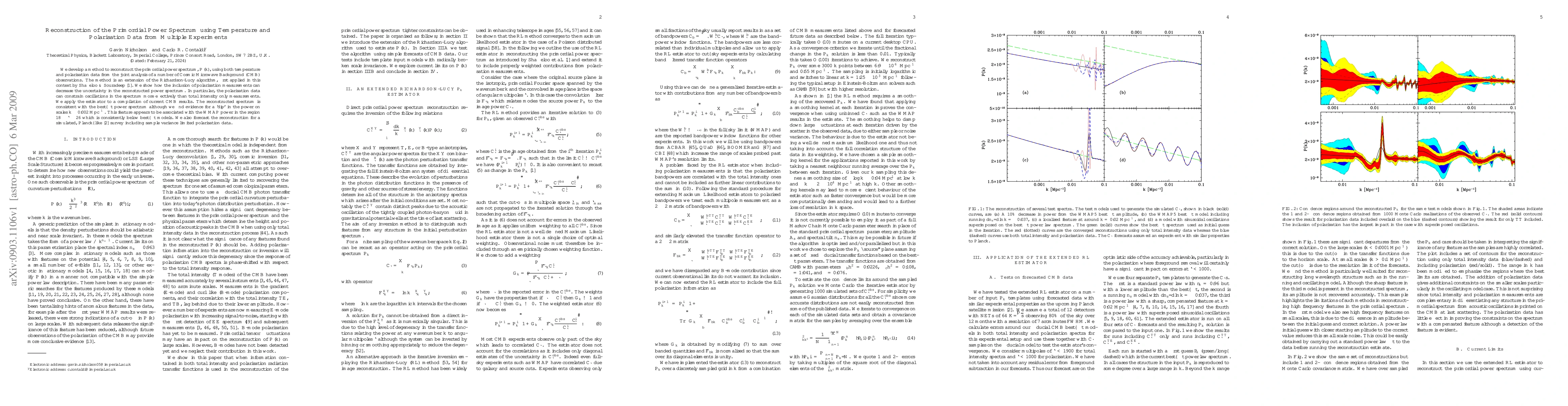 This paper presents a method to reconstruct the primordial power spectrum using combined temperature and polarisation data from multiple Cosmic Microwave Background observations, extending the Richardson-Lucy algorithm. The inclusion of polarisation data reduces uncertainty and reveals a potential "dip" in the spectrum, consistent with WMAP data discrepancies, and forecasts improved reconstructions for future surveys like Planck.