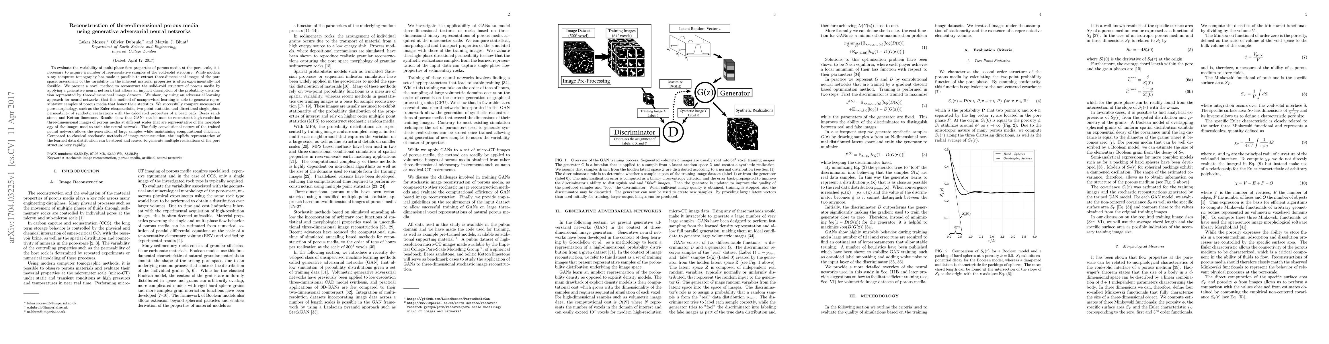This paper introduces a generative adversarial neural network (GAN) method to reconstruct three-dimensional porous media structures, enabling the generation of representative samples that accurately reflect the statistical properties of the training data. The method demonstrates computational efficiency and accuracy in replicating pore morphology, outperforming traditional stochastic methods.