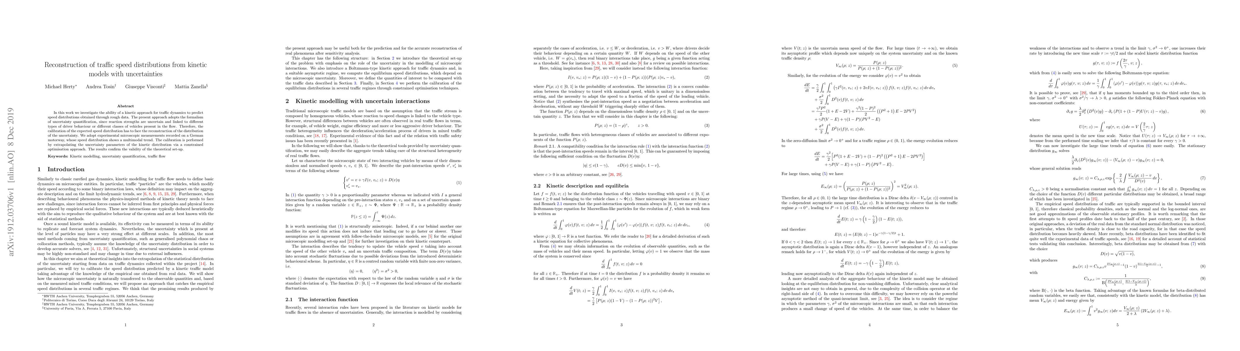 In this work we investigate the ability of a kinetic approach for traffic dynamics to predict speed distributions obtained through rough data. The present approach adopts the formalism of uncertainty quantification, since reaction strengths are uncertain and linked to different types of driver behaviour or different classes of vehicles present in the flow. Therefore, the calibration of the expected speed distribution has to face the reconstruction of the distribution of the uncertainty. We adopt experimental microscopic measurements recorded on a German motorway, whose speed distribution shows a multimodal trend. The calibration is performed by extrapolating the uncertainty parameters of the kinetic distribution via a constrained optimisation approach. The results confirm the validity of the theoretical set-up.