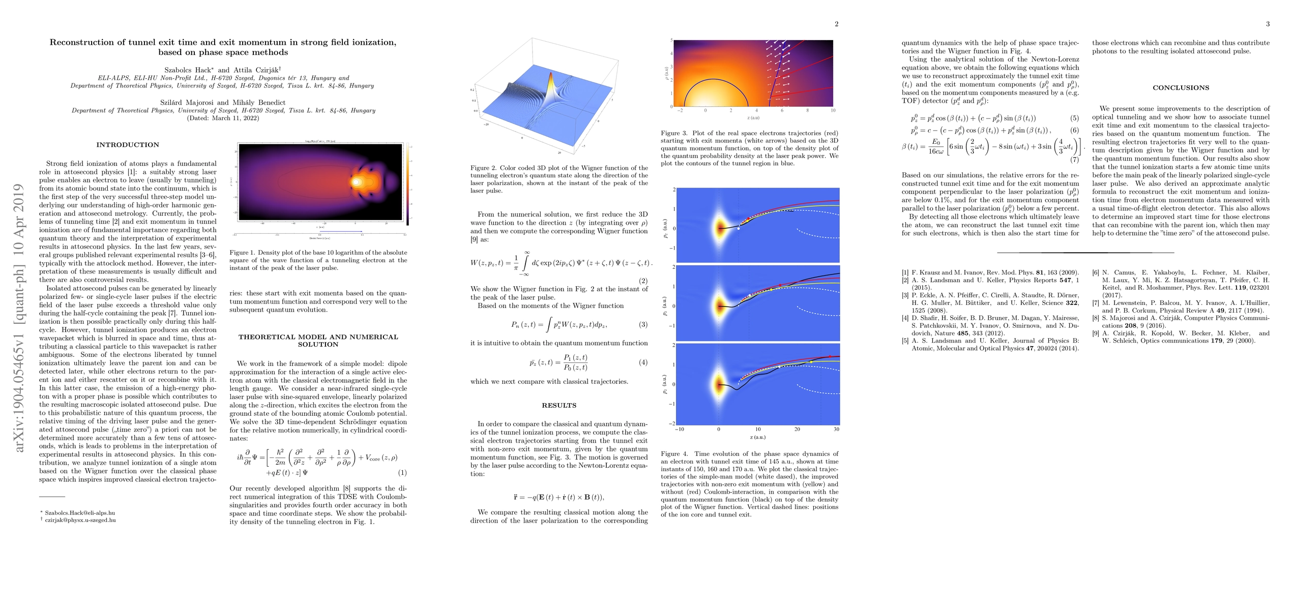 This paper reconstructs tunnel exit time and momentum in strong field ionization using phase space methods and the Wigner function, deriving an analytic formula that correlates classical electron trajectories with quantum evolution, enabling measurement via time-of-flight electron detectors.