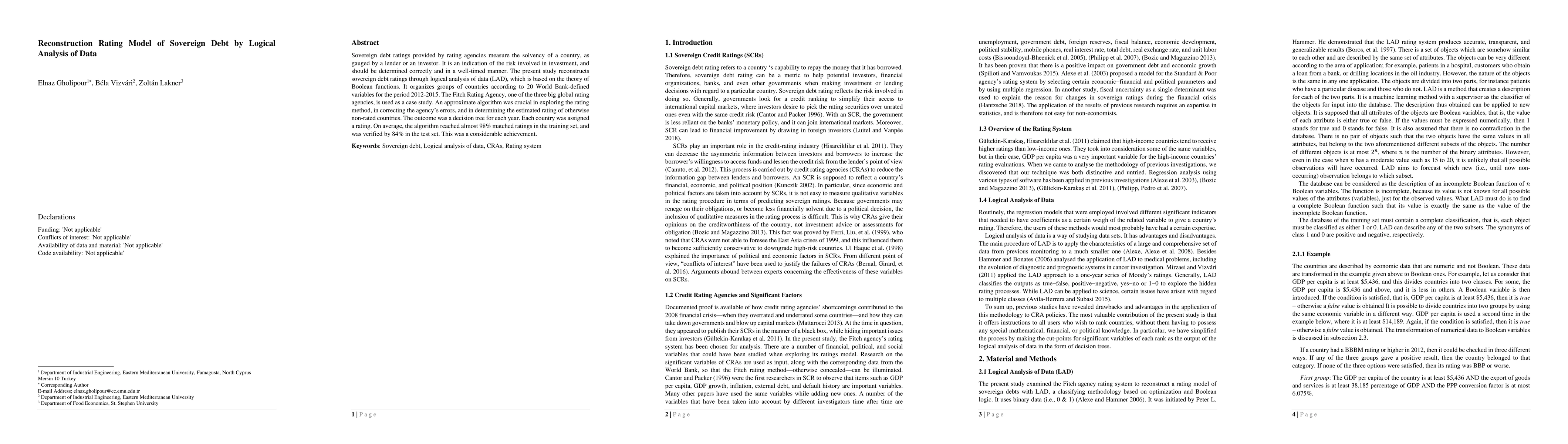The Logical Analysis of Data (LAD) methodology was employed to reconstruct Fitch's sovereign debt rating model, resulting in decision trees that accurately predict ratings based on selected World Bank variables.