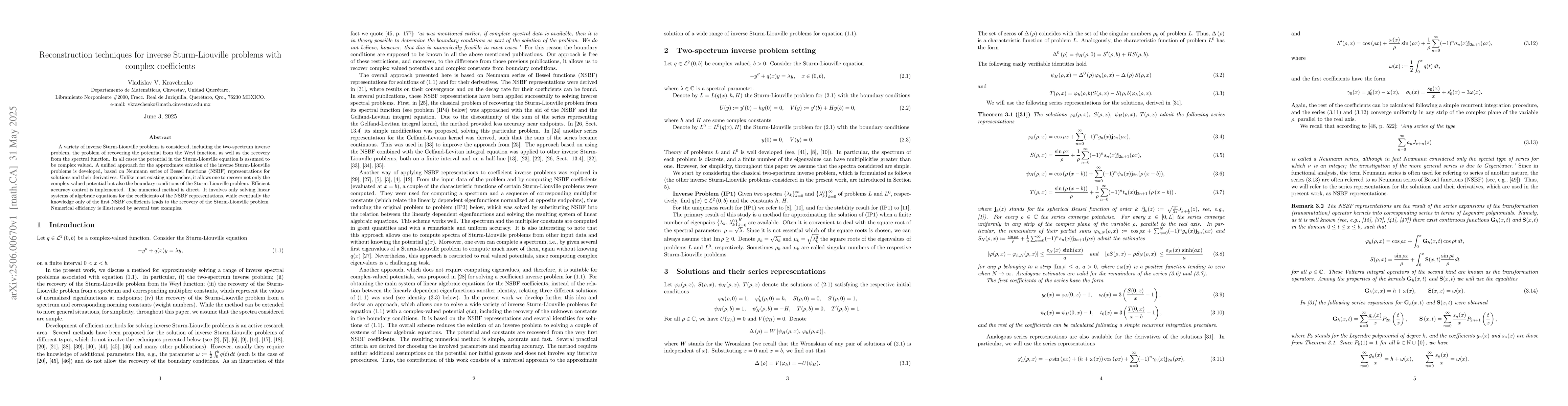 The research develops a unified approach for solving inverse Sturm-Liouville problems using Neumann series of Bessel functions (NSBF) representations, enabling the recovery of complex-valued potentials and boundary conditions.
