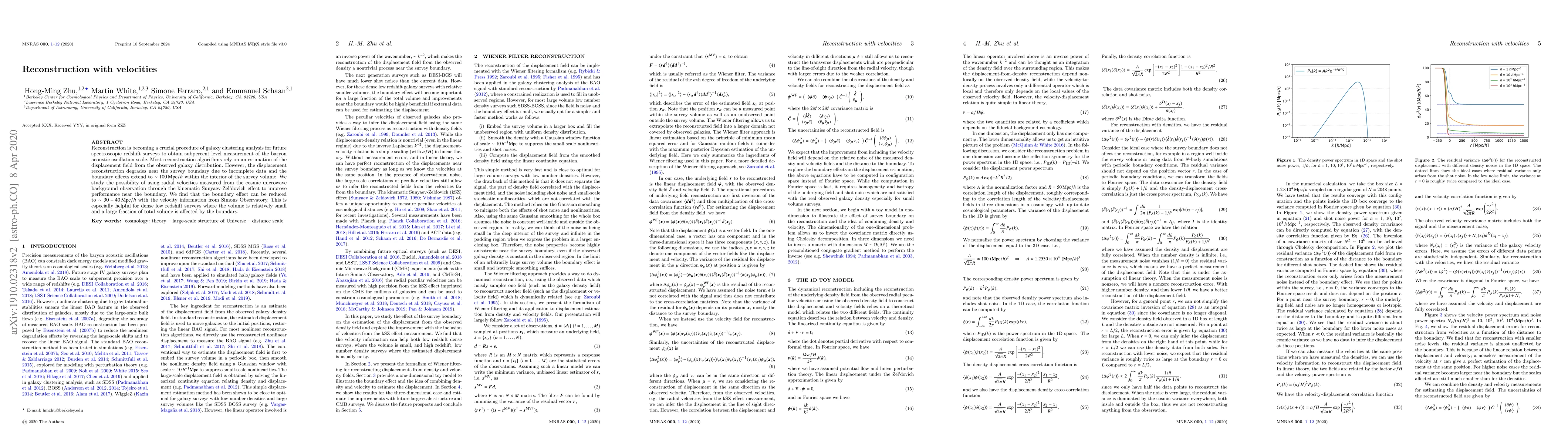 Reconstruction is becoming a crucial procedure of galaxy clustering analysis for future spectroscopic redshift surveys to obtain subpercent level measurement of the baryon acoustic oscillation scale. Most reconstruction algorithms rely on an estimation of the displacement field from the observed galaxy distribution. However, the displacement reconstruction degrades near the survey boundary due to incomplete data and the boundary effects extend to $\sim100\,\mathrm{Mpc}/h$ within the interior of the survey volume. We study the possibility of using radial velocities measured from the cosmic microwave background observation through the kinematic Sunyaev-Zel'dovich effect to improve performance near the boundary. We find that the boundary effect can be reduced to $\sim30-40\,\mathrm{Mpc}/h$ with the velocity information from Simons Observatory. This is especially helpful for dense low redshift surveys where the volume is relatively small and a large fraction of total volume is affected by the boundary.