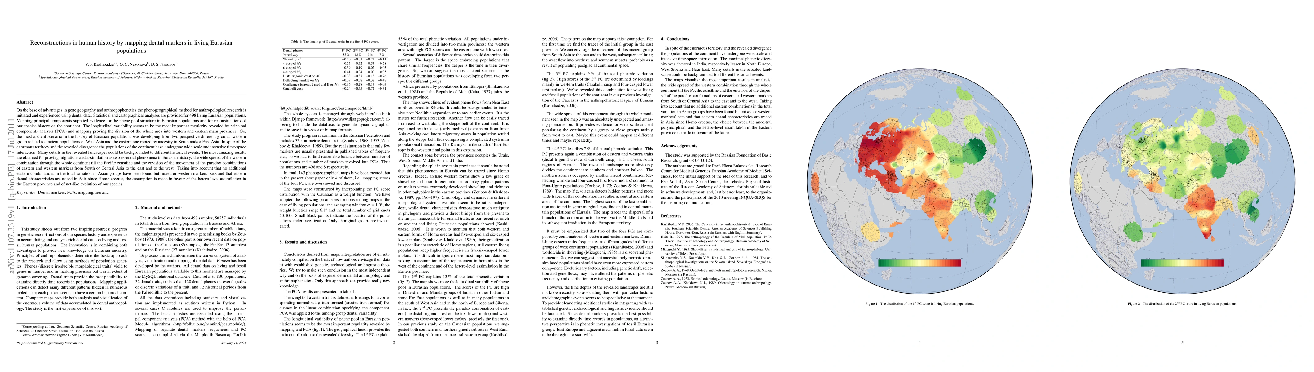Researchers used dental markers to map living Eurasian populations and reconstruct human history, finding two main provinces with distinct ancestral origins and evidence of widespread migration and assimilation across the continent.