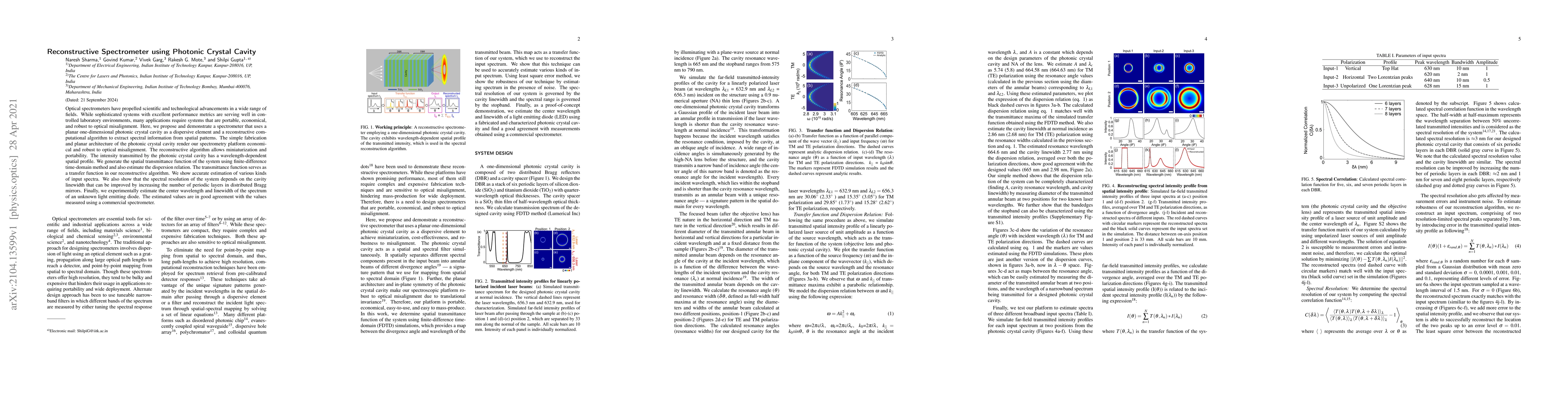 This paper proposes a portable, economical spectrometer using a photonic crystal cavity and a reconstructive computational algorithm to extract spectral information. The design achieves robustness and miniaturization, demonstrating accurate spectral estimation and good agreement with commercial spectrometer measurements.