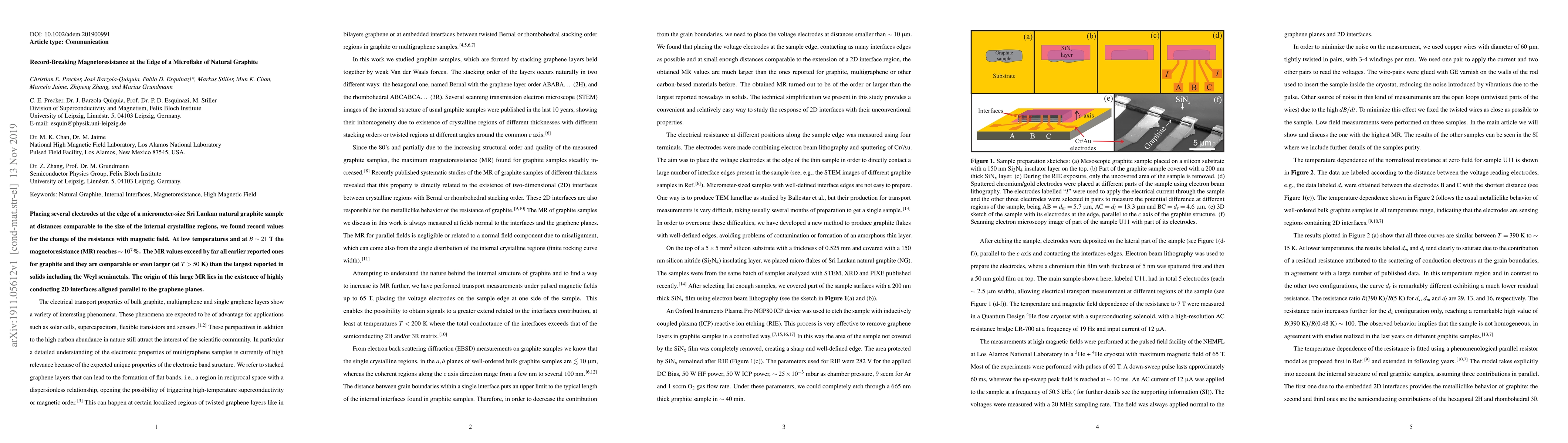 This study reports unprecedented magnetoresistance values in a microflake of natural graphite, reaching up to 10^7% at low temperatures and high magnetic fields. The exceptional MR is attributed to highly conductive 2D interfaces parallel to graphene planes, surpassing previous records in both graphite and other materials.
