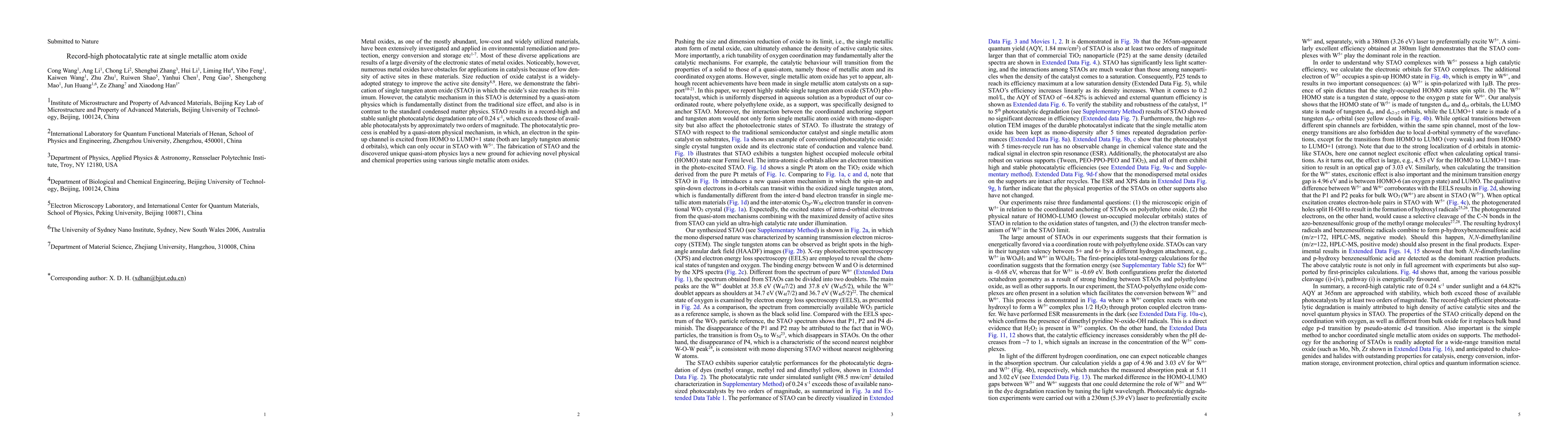 Researchers created a single atomic metal oxide with record-high photocatalytic rate, exceeding other methods by two orders of magnitude, due to its unique quasi-atom physical mechanism.