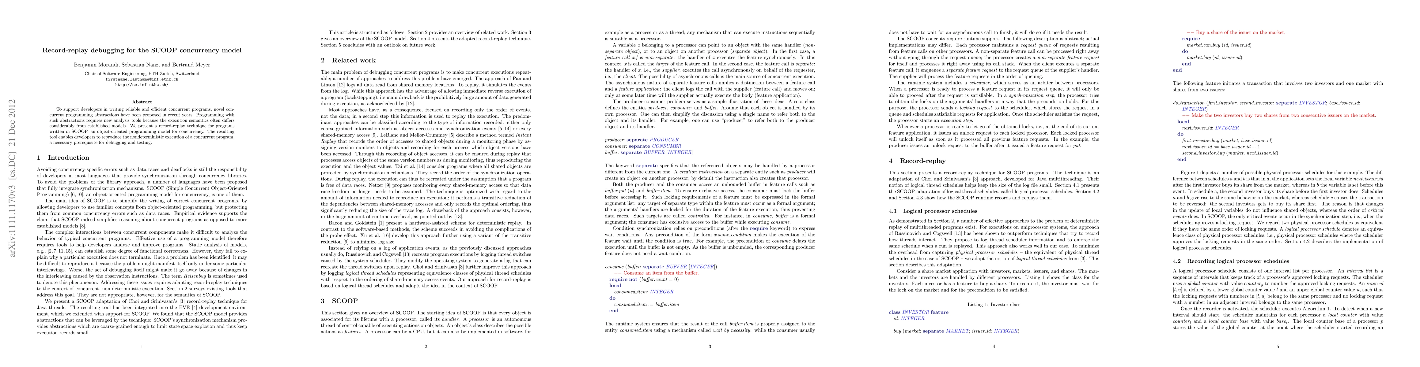 This paper introduces a record-replay debugging technique for SCOOP, a concurrent programming model, allowing developers to reproduce nondeterministic execution for debugging and testing. The tool facilitates the analysis of concurrent programs by capturing and replaying their execution semantics.