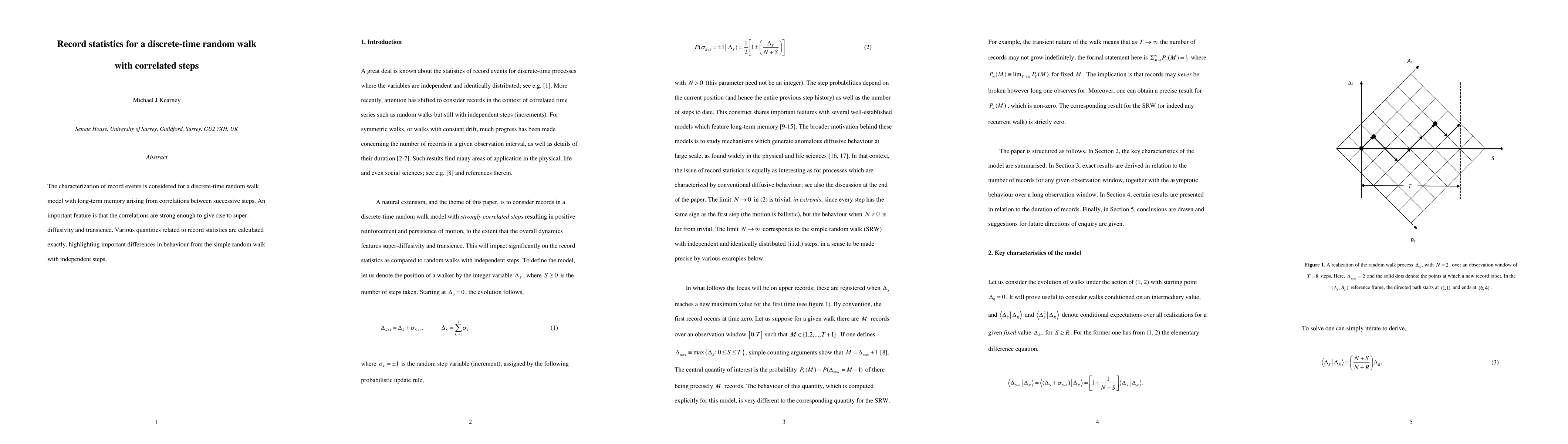 The development and analysis of a novel random walk model with correlated steps, leading to new insights into record statistics.