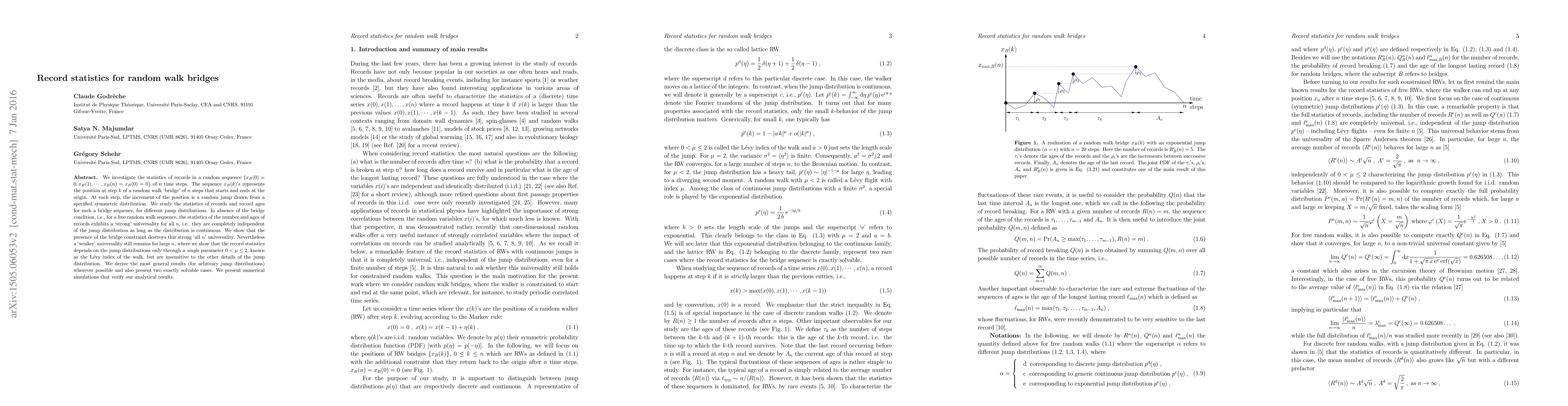 This paper studies the record statistics for random walk bridges, which are constrained to start and end at the origin. It finds that while free random walks exhibit strong universality in record statistics, the bridge constraint disrupts this, though a weaker form of universality remains for large $n$ depending on the L\'evy index of the jump distribution. Analytical results are verified through numerical simulations.