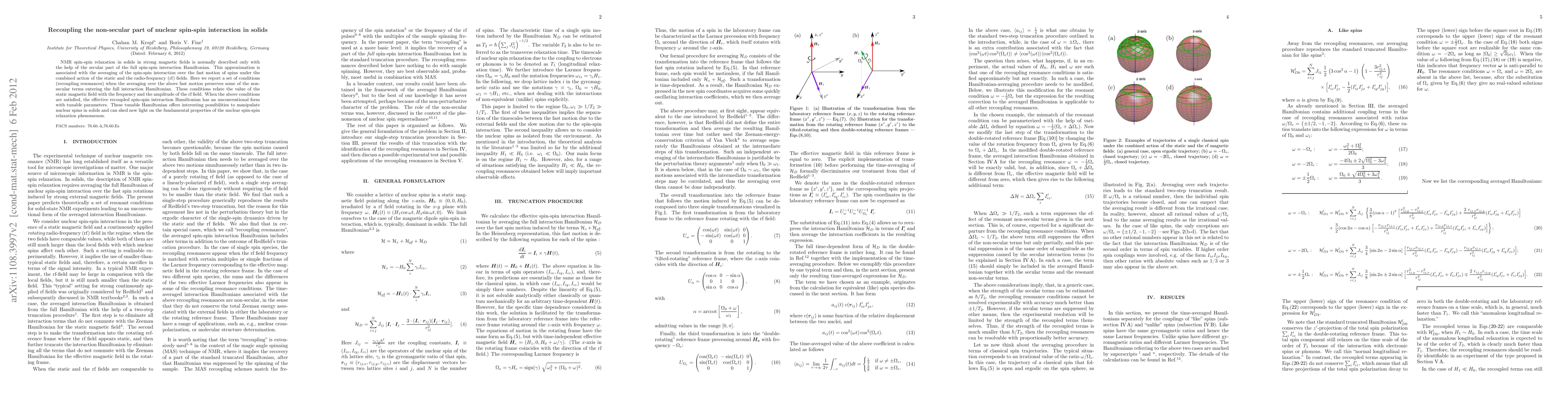 This paper explores conditions under which non-secular terms in the nuclear spin-spin interaction Hamiltonian are preserved during NMR relaxation in solids, leading to a recoupled Hamiltonian with tunable parameters that can manipulate nuclear spins and provide new insights into nuclear spin-spin relaxation.